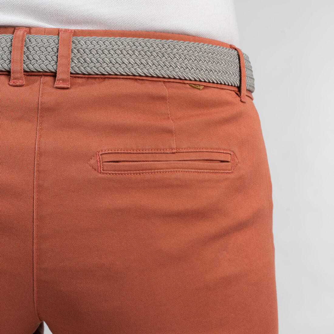 Le choix du tissu en coton élasthanne a fait l'objet de test de comparaison bien précis. Nous avons allié le confort, le tomber, l'aspect visuel et l'entretien facile du pantalon. Les 5 passants peuvent recevoir une ceinture d'une hauteur de 4,5 cm. Les poches sont imprimées d'un fine rayure. Les 2 poches arrières sont facilement accessibles pour insérer votre carte de score et votre gant de golf.
