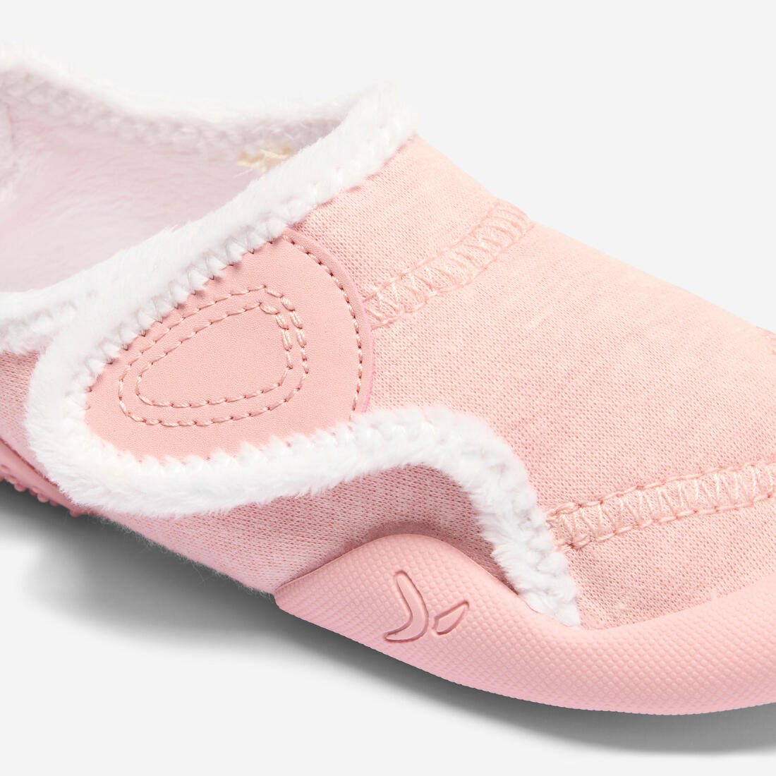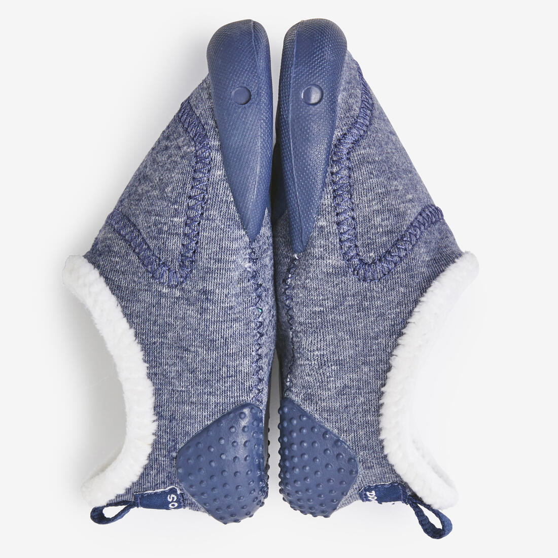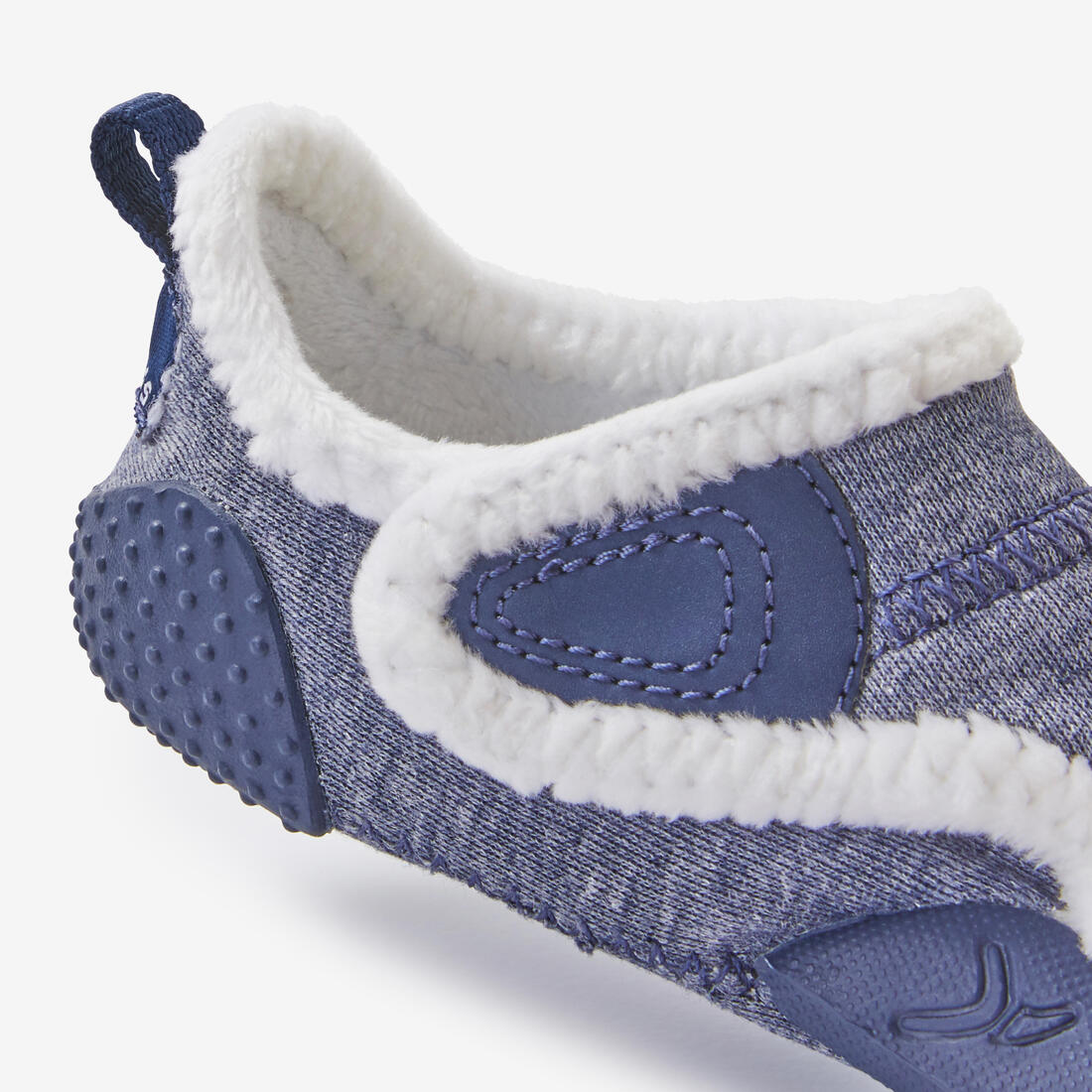 Marcher pieds nus est meilleur pour les bébés, cela permet l’apprentissage et la reconnaissance de sensations tactiles. Les nerfs situés sous le pied aident à déterminer où le poids du corps devra être réparti pour un bon équilibre. Larges et souples, les chaussons Domyos permettent aux pieds du bébé de se développer et de se renforcer sans restriction, tout en les protégeant contre le froid ou les surfaces dangereuses. Tous nos chaussants sont adaptés à la morphologie spécifique des petits.