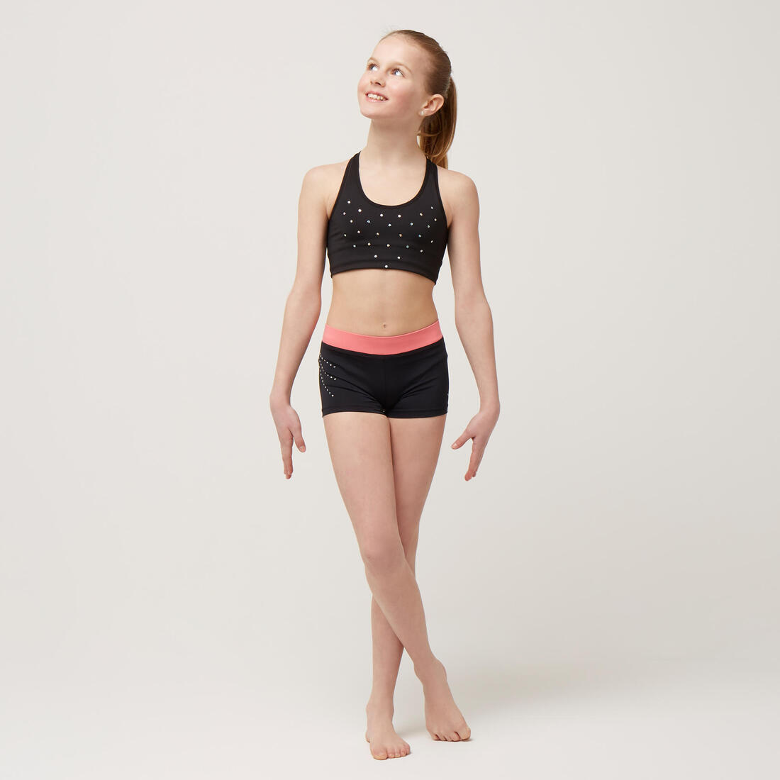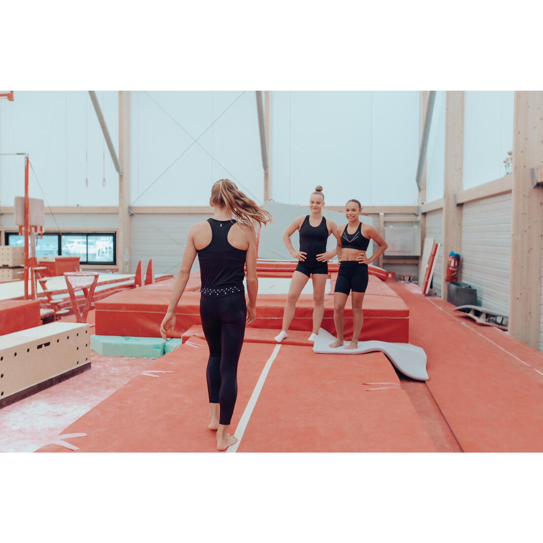 Le conseil de notre équipe conception : le parfait équipement de la gymnaste en entraînement sera un justaucorps sans manche, un top ou une brassière ainsi qu'un short ou un legging. Cela lui permettra d'effectuer ses éléments de gymnastique en toute confiance et liberté afin de pouvoir mettre un pied par la suite sur les plateaux de compétition.