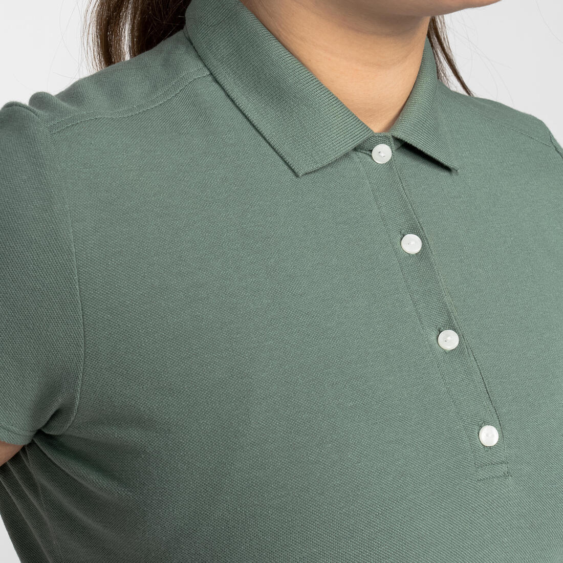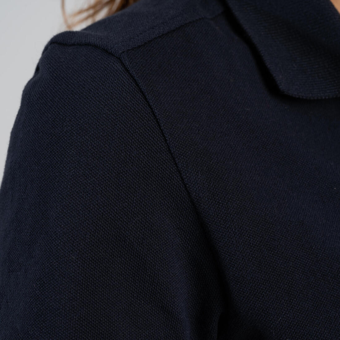 La maille piquée souple et douce procure le confort indispensable à la golfeuse pour jouer sous une température comprise entre 10 et 20° grâce à sa matière coton/polyester qui évacue la transpiration.