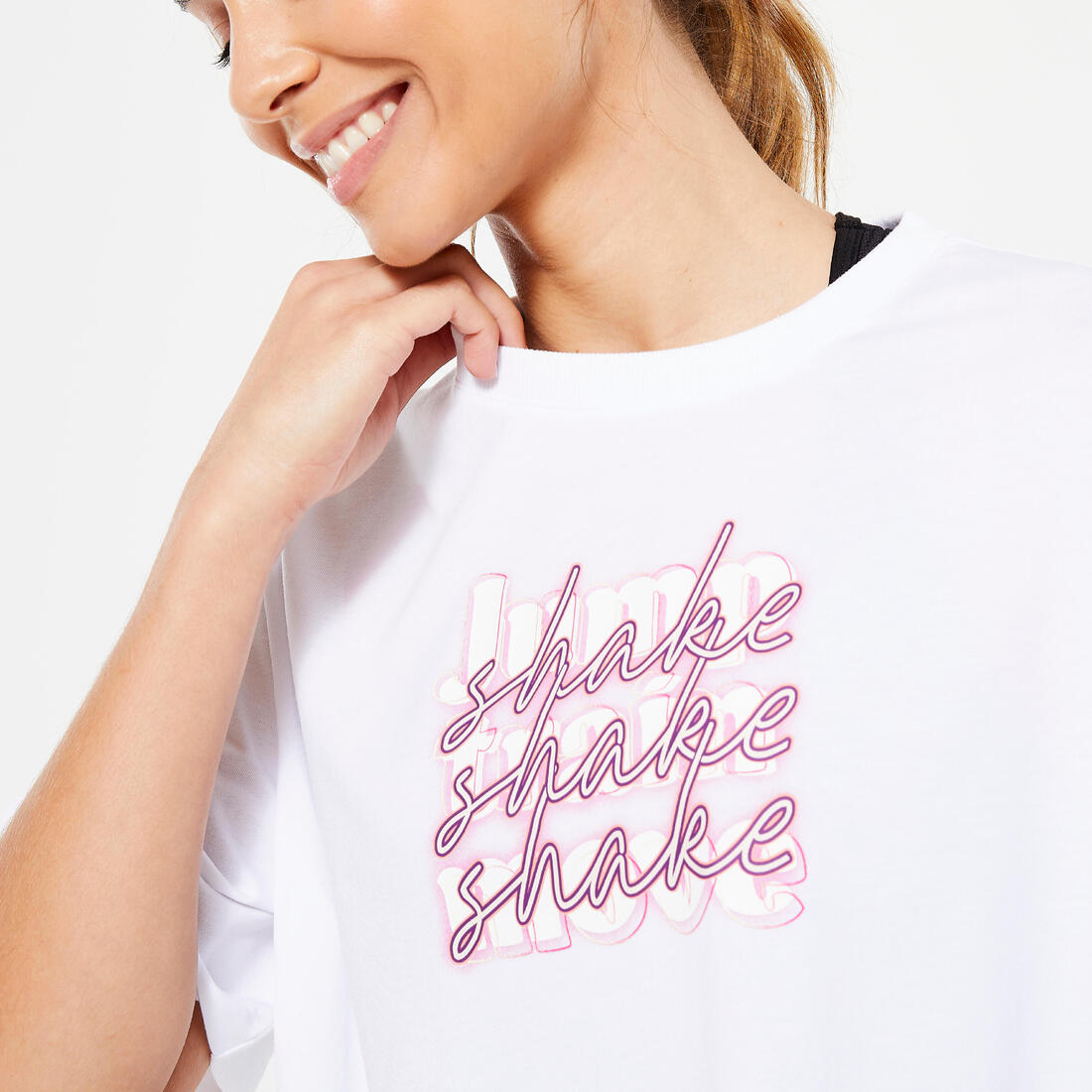 Ce crop top se porte simplement sur une brassière avec un pantalon de jogging ou un legging pour un look stylé. Sa coupe crop et son volume ample s'accordent avec toutes vos tenues et subliment votre silhouette. Vous aimerez le porter pour vos séances de sport comme pour vos sorties entre copines !