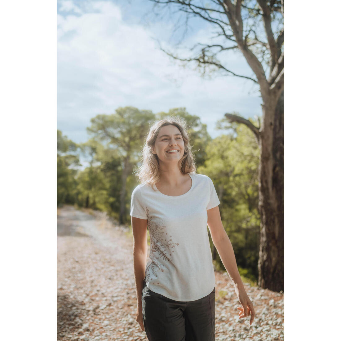 Le T-Shirt contient 20% de coton recyclé. Pour préserver la résistance, la performance et la douceur de nos produits lors de votre pratique, nous intégrons à des fibres de coton vierge, du coton recyclé issu de chutes industrielles ou de textiles en fin de vie. Cette méthode réduit ainsi l'impact lié à la culture de nouvelles fibres de coton, tout en préservant les qualités et les performances de la matière pour vos randonnées.