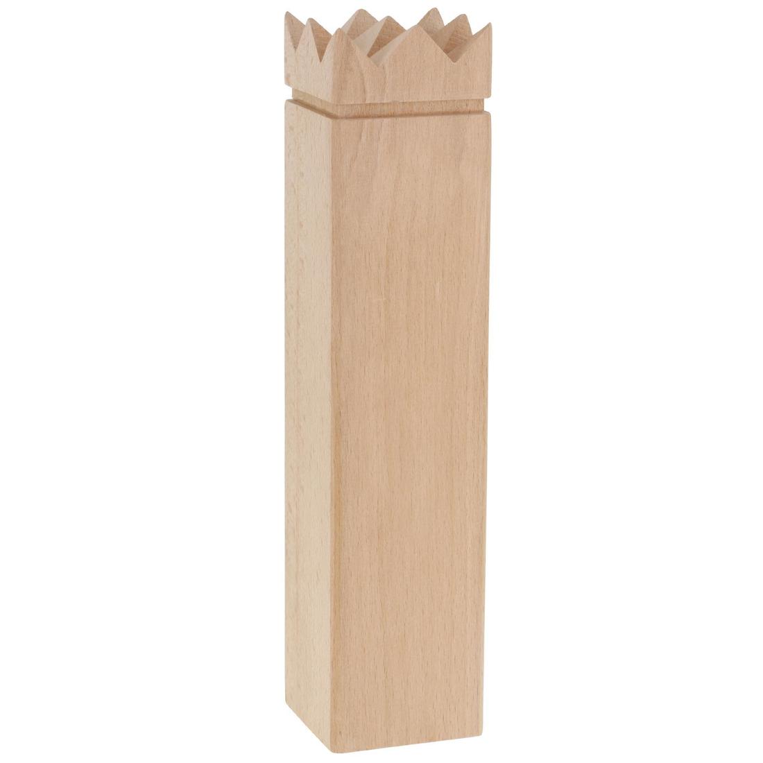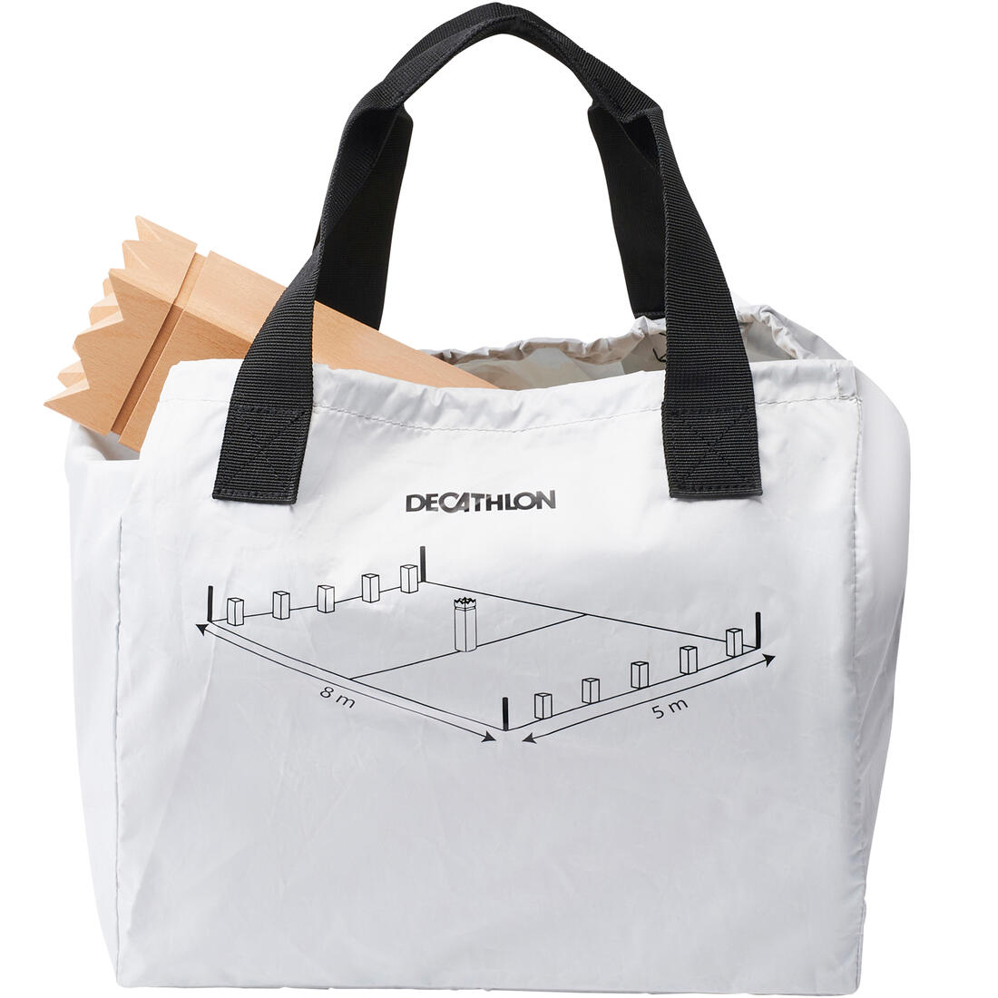 1 roi (côté : 70 mm - hauteur : 300 mm) 4 piquets 6 lanceurs 10 Kubbs (côté : 60 mm - hauteur : 150 mm) 1 sac de transport