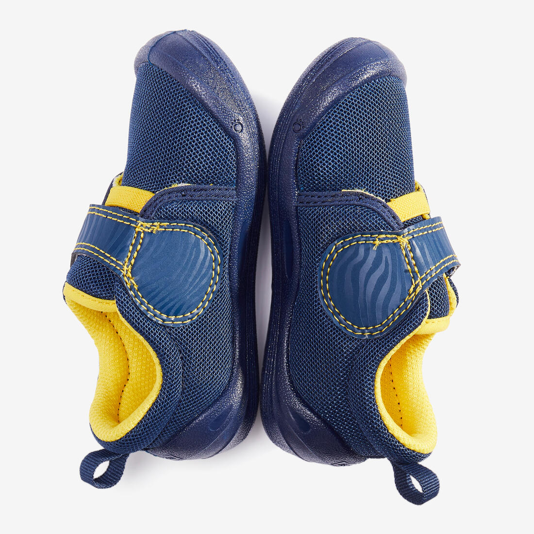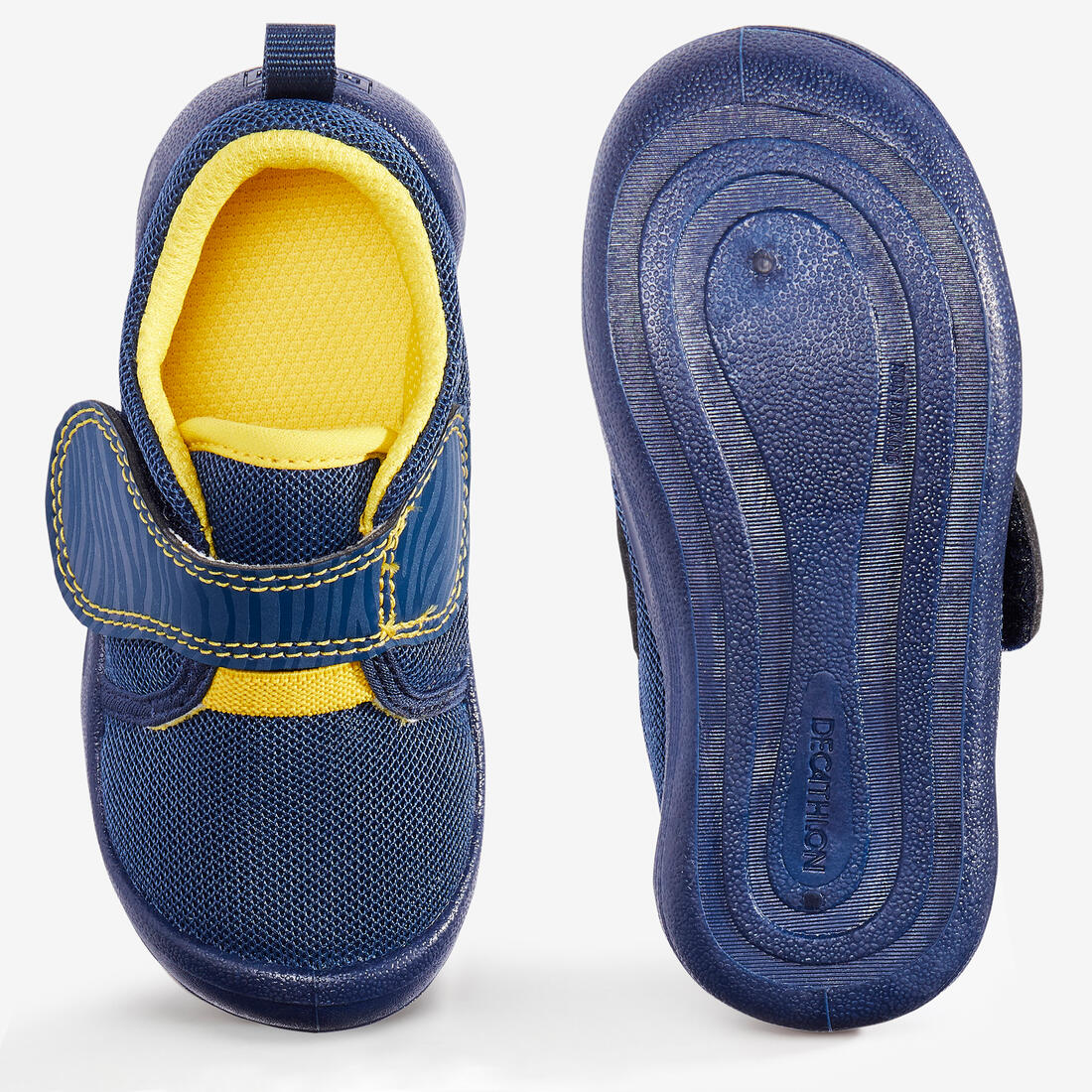 Le pied n’a pas besoin de chaussure pour se développer.Mais les chaussures sont importantes pour protéger les pieds contre le froid, l’humidité, les chocs, à l'intérieur comme à l'extérieur.Les chaussures Domyos I LEARN fournissent à l'enfant de 1à2 ans la protection dont il a besoin, en lui laissant le maximum de liberté de mouvement : la flexibilité de la chaussure permet au pied de se développer de façon naturelle, et la semelle fine, plate et très flexible se rapproche de la marche pieds nus