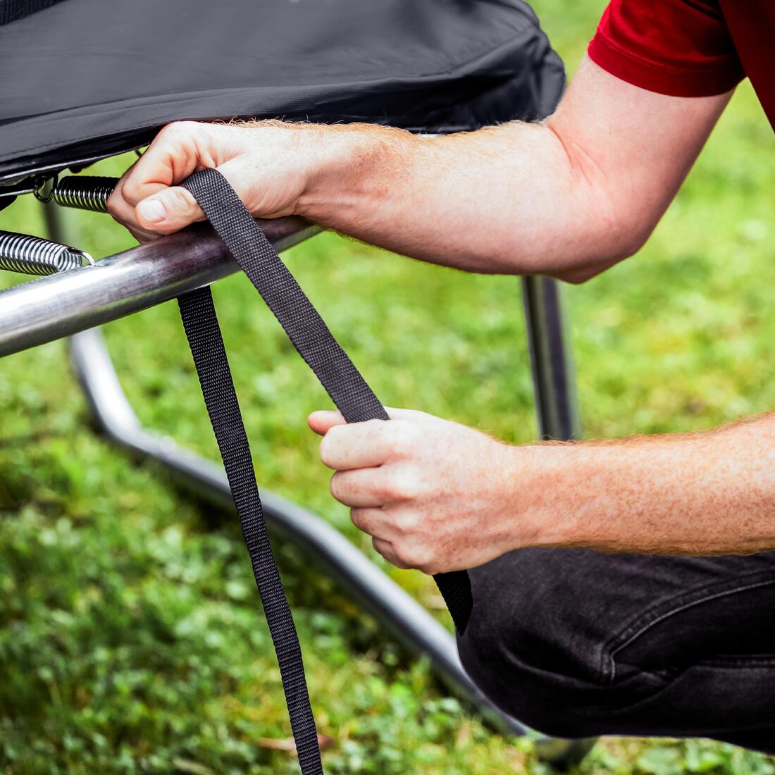 Le kit d'ancrage est idéal pour renforcer la bonne tenue de votre trampoline au sol, notamment en cas d'intempéries.