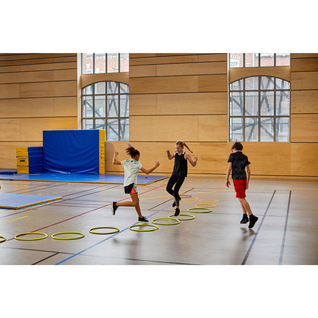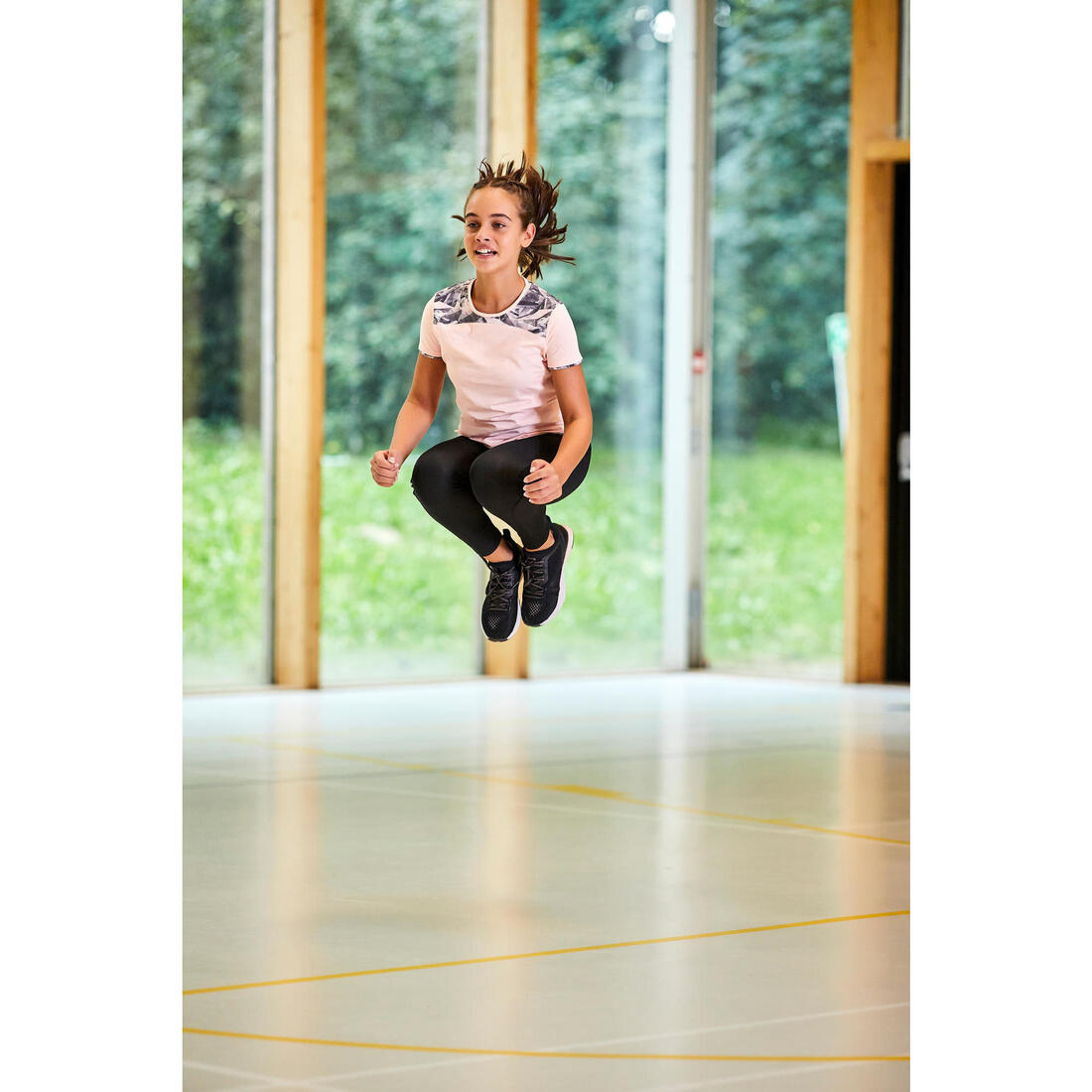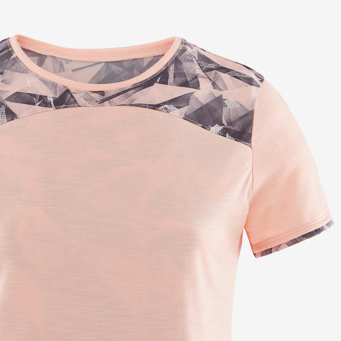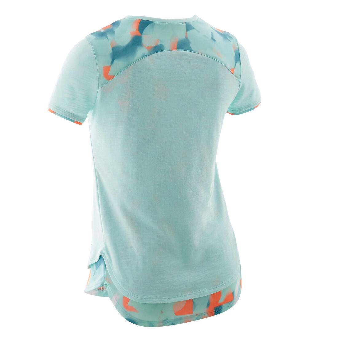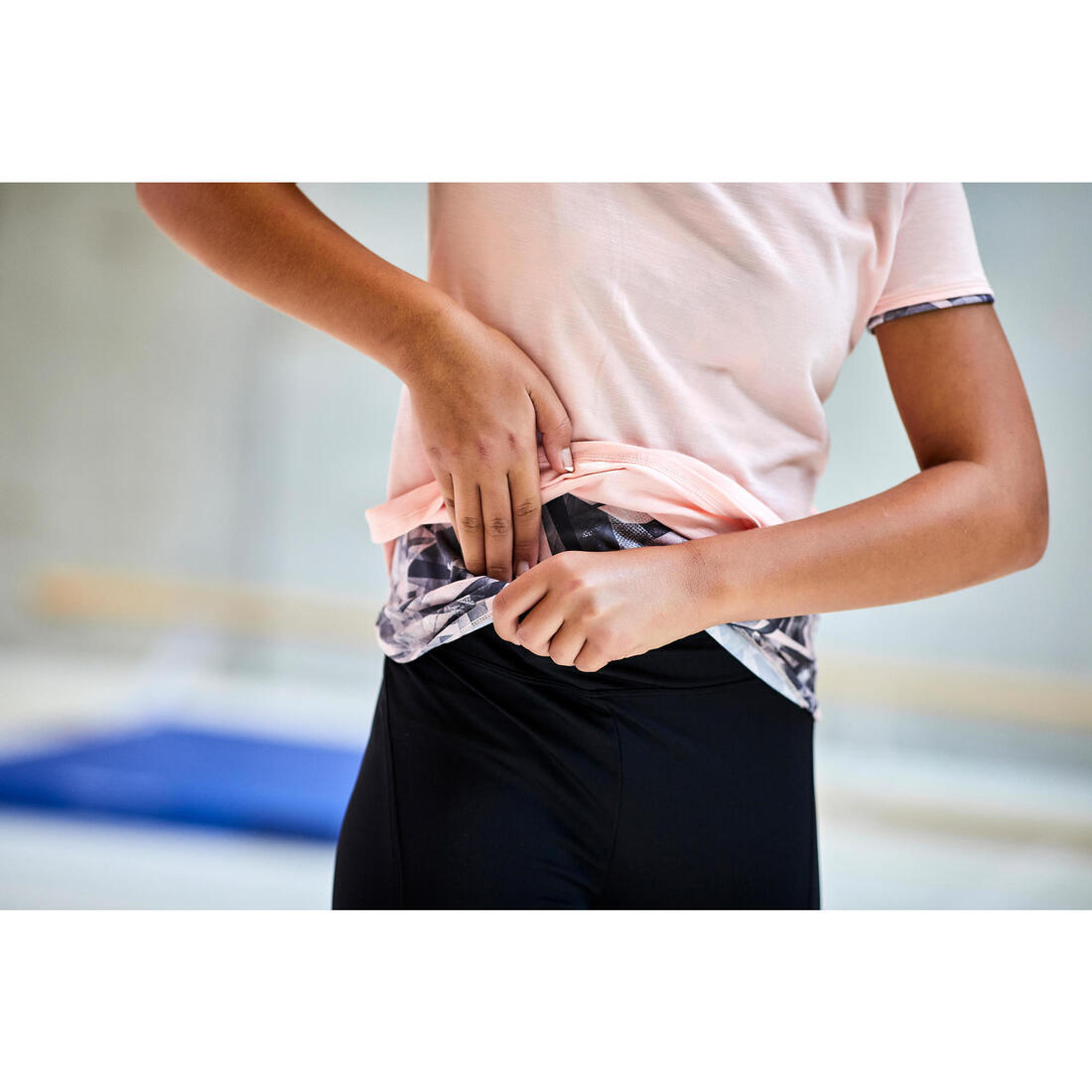 Ce t-shirt malin tient même la tête en bas ! Il est constitué de deux épaisseurs : l'une près du corps, légèrement plus longue et peut se glisser dans le short, le pantalon, le legging. L'autre partie reste dehors et habille la taille de votre fille. De cette manière, le bas du dos et le ventre restent couverts même pendant une roue. Astucieux, non ?