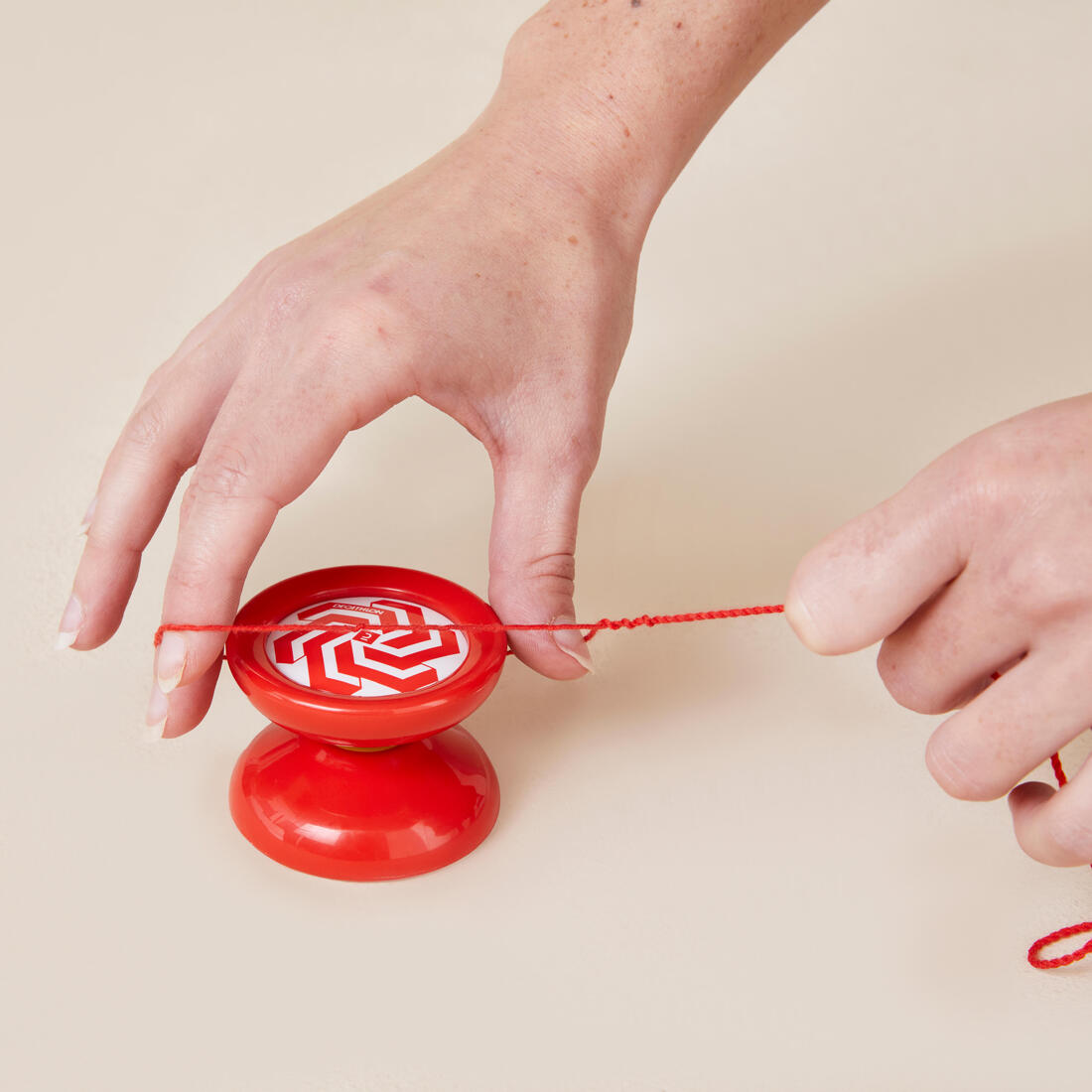 Il est important que la ficelle soit adaptée à votre taille. Positionnez le yoyo devant vous, au sol au niveau de vos pieds. Puis déroulez la ficelle, jusqu’à votre nombril. Coupez le surplus de ficelle si nécessaire, puis effectuez une boucle à hauteur de votre nombril, à l’aide de votre majeur. Attention à ne pas couper la ficelle trop courte, avant d’avoir effectué la boucle. Vous êtes maintenant prêt pour vous amuser en famille avec ce jeu traditionnel que tous les enfants adorent !