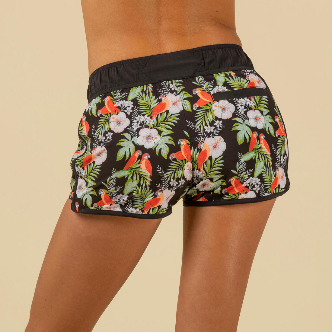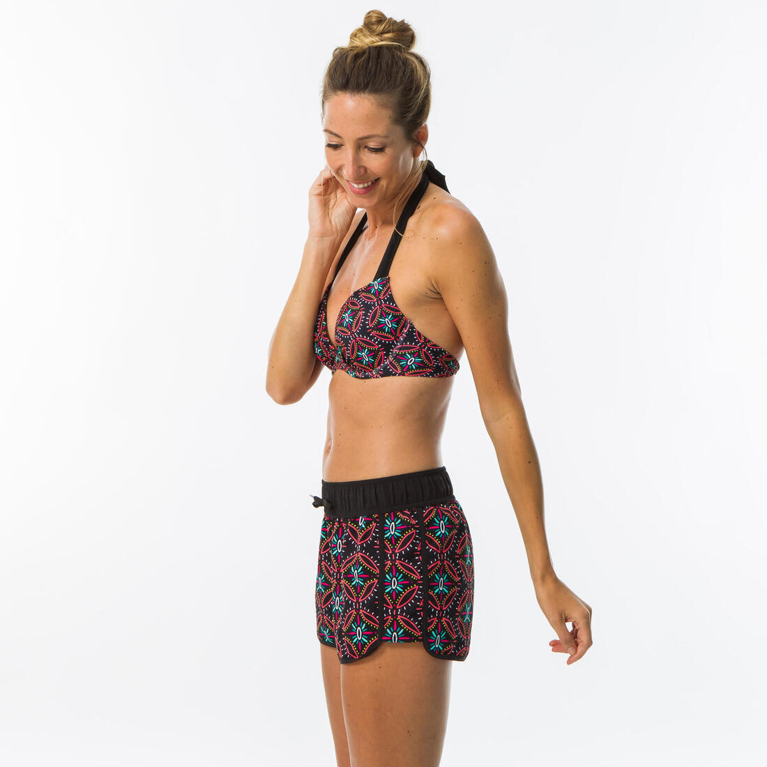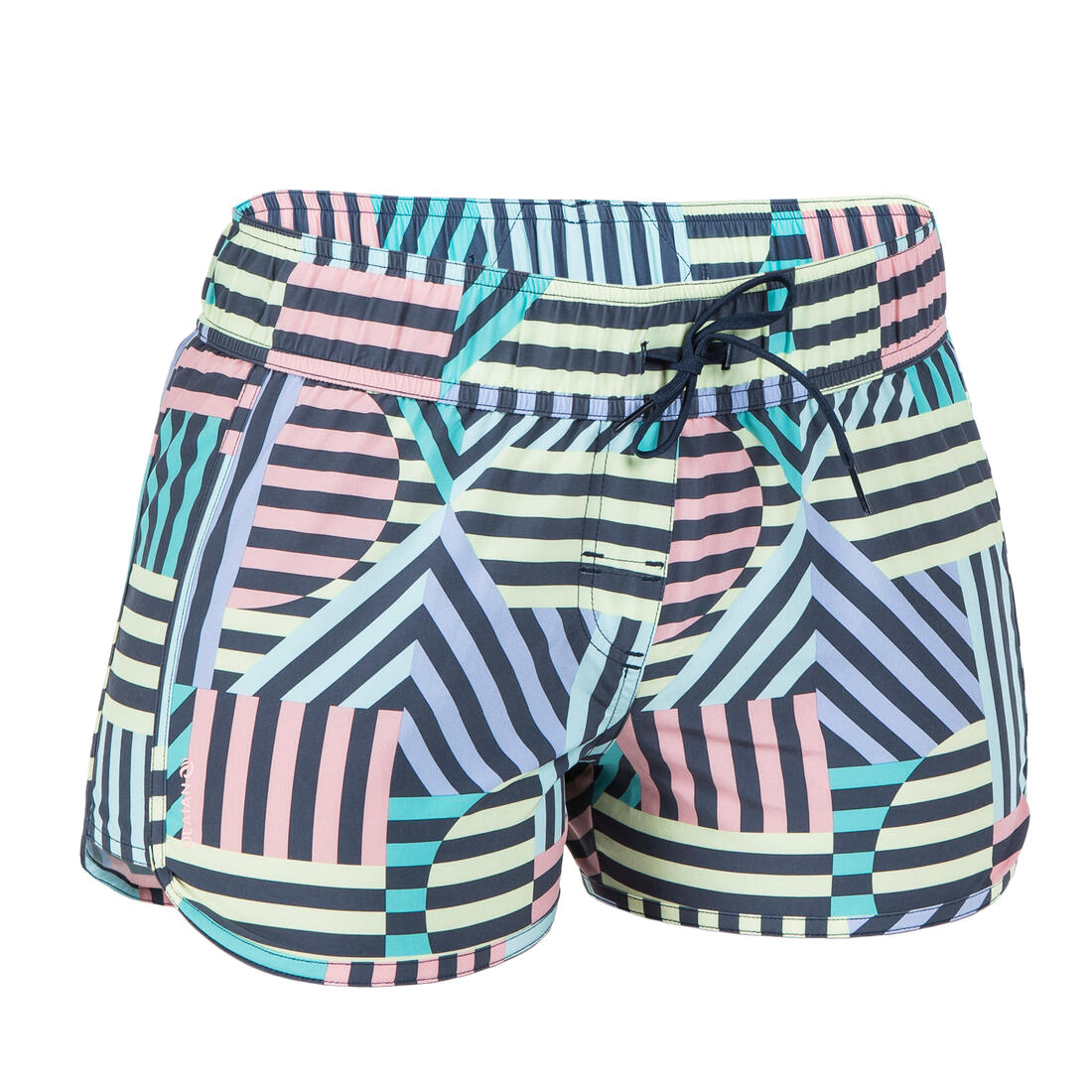 Ce boardshort femme court se porte au dessus du maillot de bain pour toutes les activités nautiques, avec ceinture élastiquée et cordon de serrage.