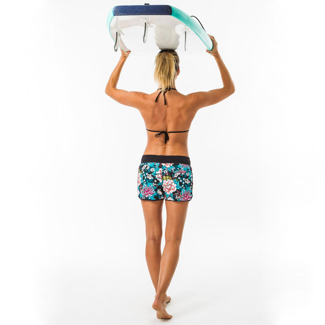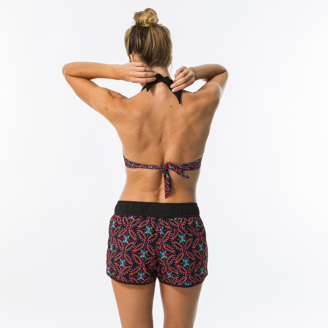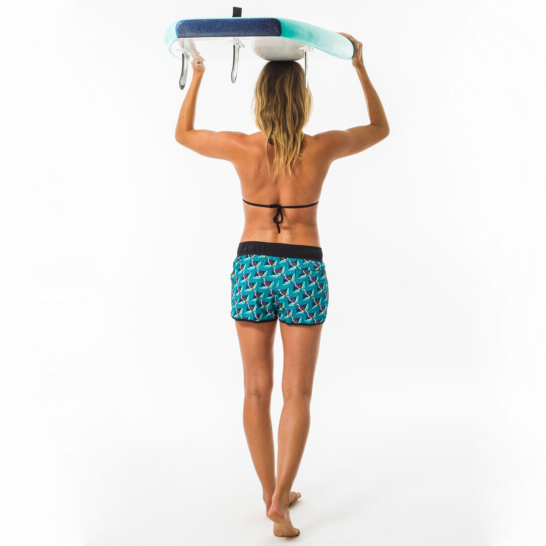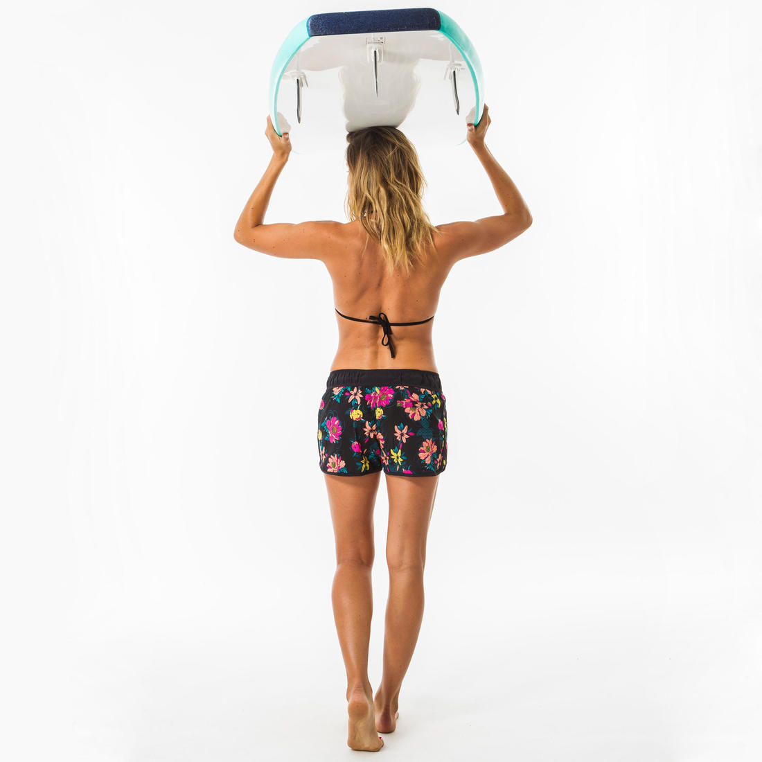 Ce boardshort femme court se porte au dessus du maillot de bain pour toutes les activités nautiques, avec ceinture élastiquée et cordon de serrage.