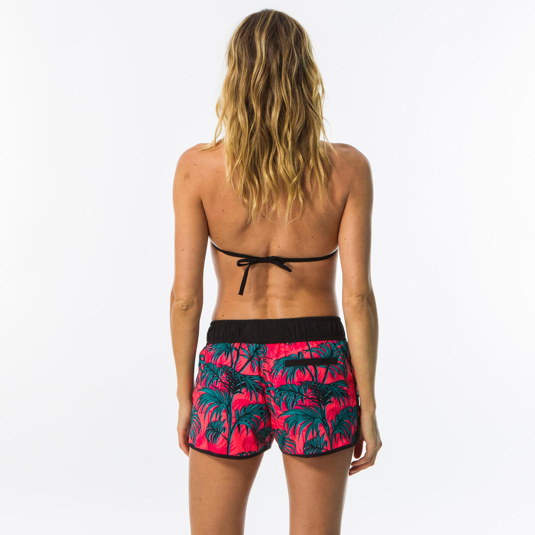 Boardshort surf femme TINI CORAIL avec ceinture élastiquée et cordon de serrage