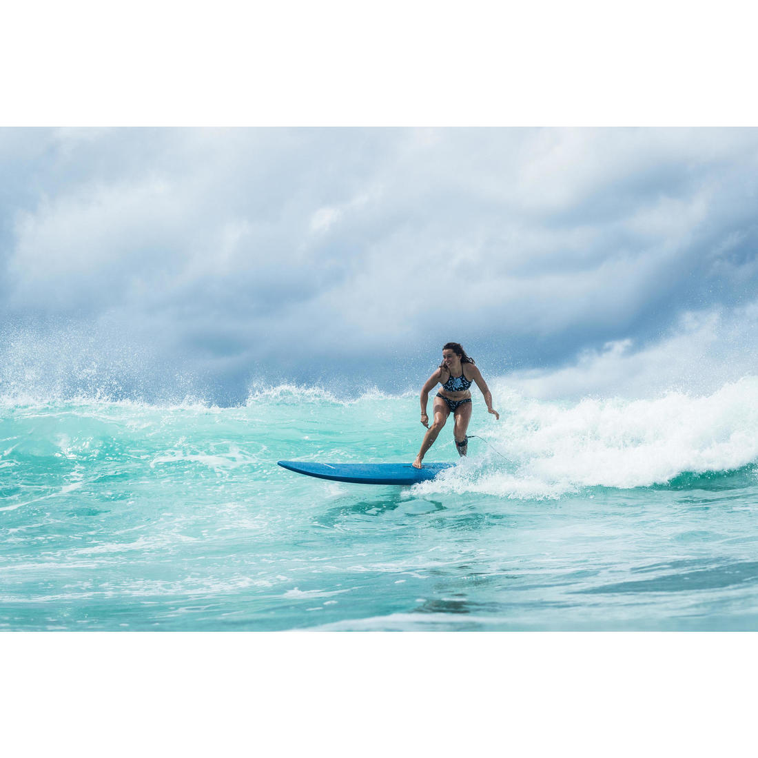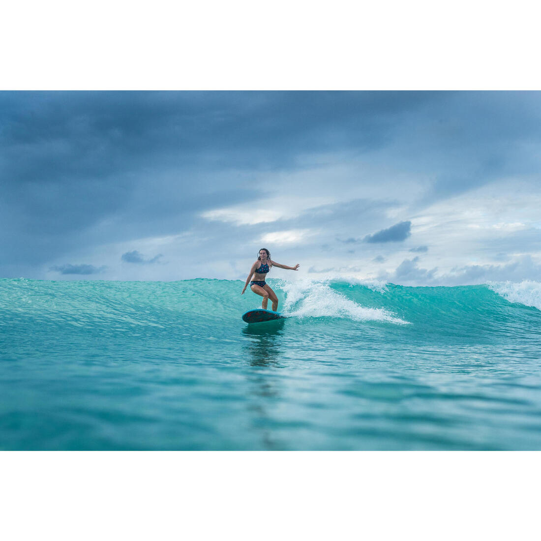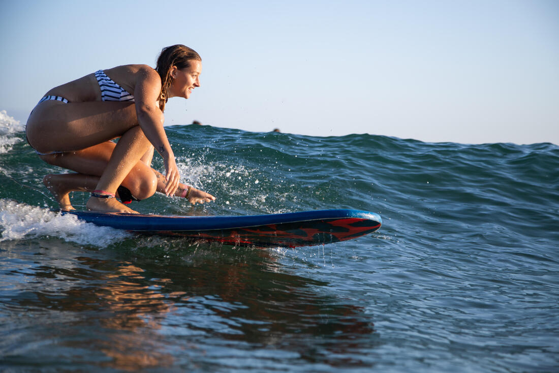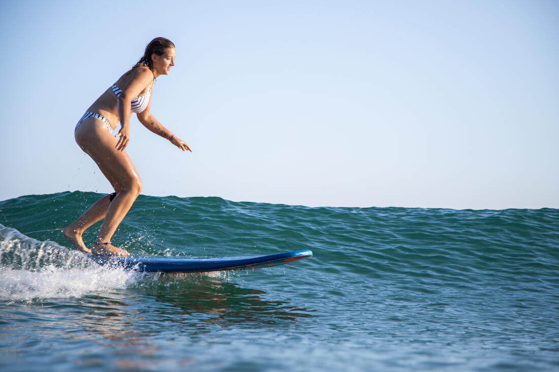 Nous, surfeuses de tous niveaux, avons conçu ce maillot de bain pour la surfeuse confirmée qui surfe les vagues de moins d’un mètre.