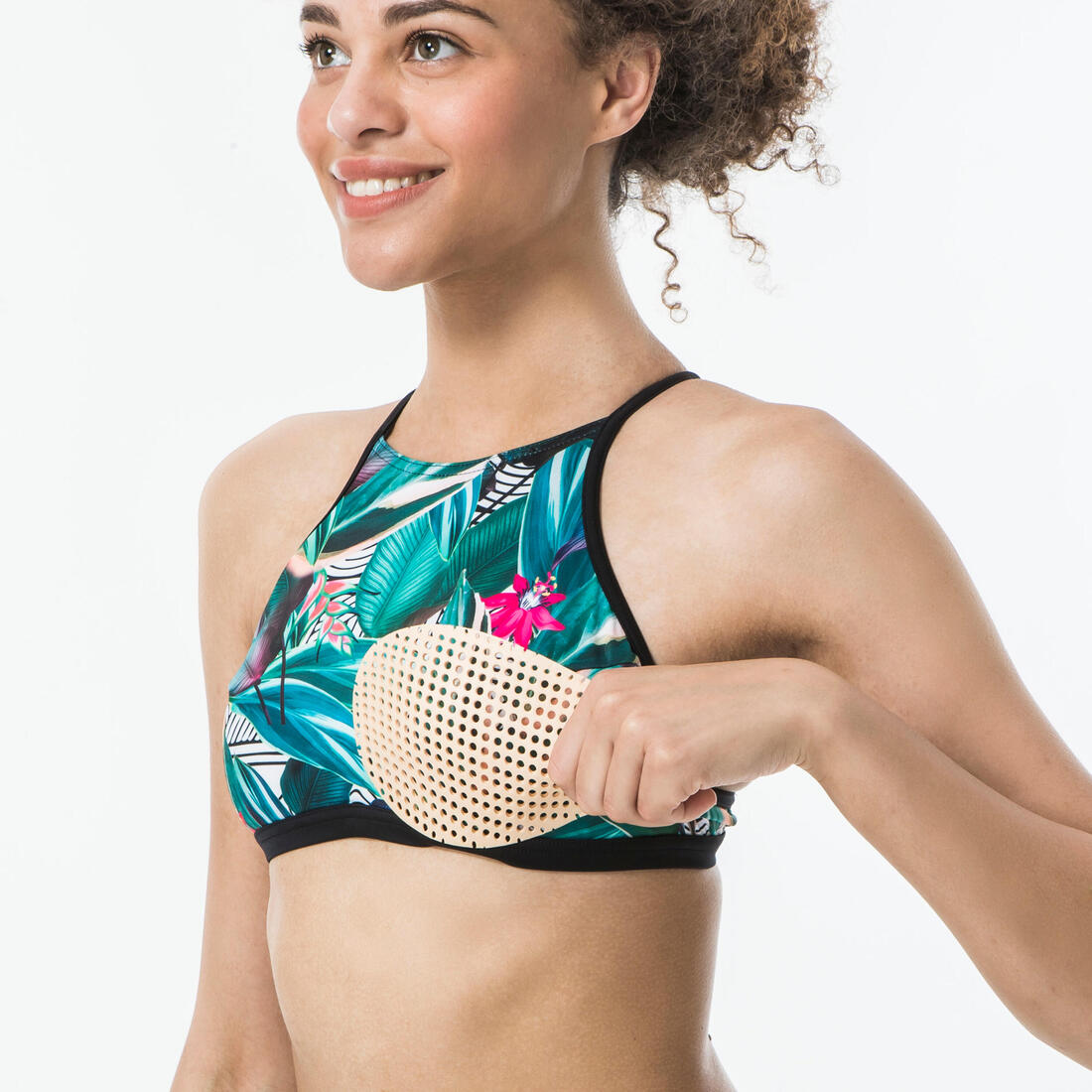 La coque est une solution intégrée au haut de maillot de bain qui permet de valoriser le galbe de la poitrine et de dessiner un sein bien rond sans démarcation de couture ni irritation à la différence d'une mousse coupée cousue. Olaian a pensé à vous et votre confort en privilégiant l'usage des coques dans la plupart de ses modèles. La coque peut être amovible et dans ce cas permet de gagner ou d'ôter une demie taille.