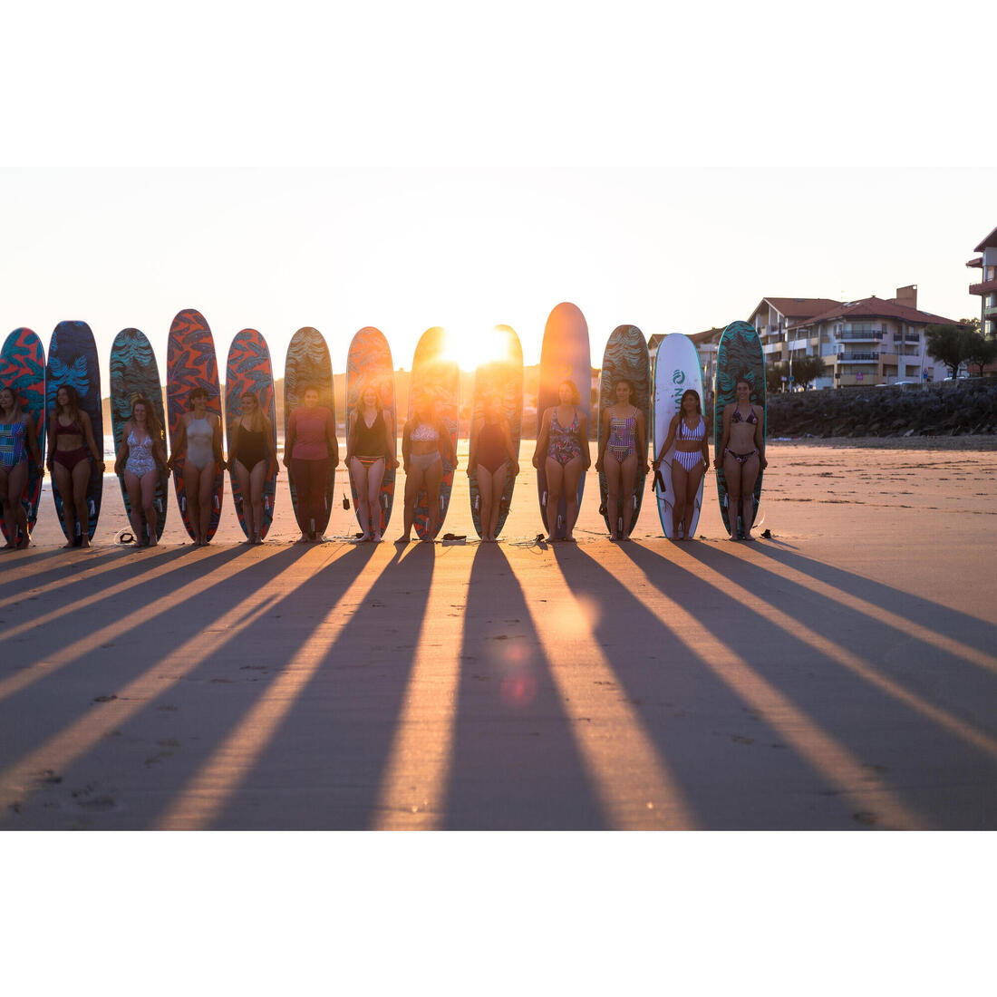 Nous, surfeuses de tous niveaux, avons conçu ce maillot de bain pour la surfeuse débutante qui surfe dans les mousses.