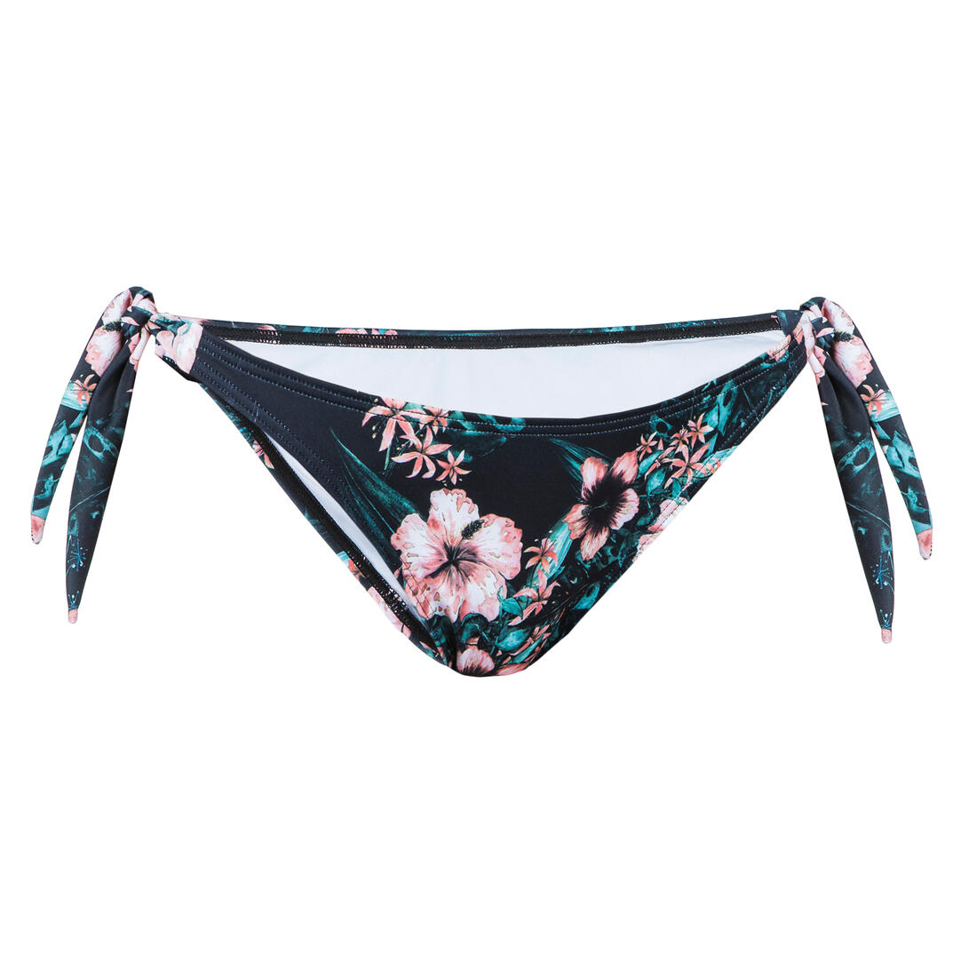 Avec le triangle coulissant, la culotte nouée est l'incontournable du bikini ! C’est le basique de la garde robe de l’été. Grâce à sa forme très échancrée sur les cuisses, elle allonge visuellement la jambe. Contrairement à ce que l’on pense, toutes les femmes peuvent la porter à condition d’être à l’aise avec son corps et en particulier son ventre, car c’est une culotte plutôt taille basse. Les larges liens côtés peuvent être resserrés et assurent la tenue de la culotte dans la vague.