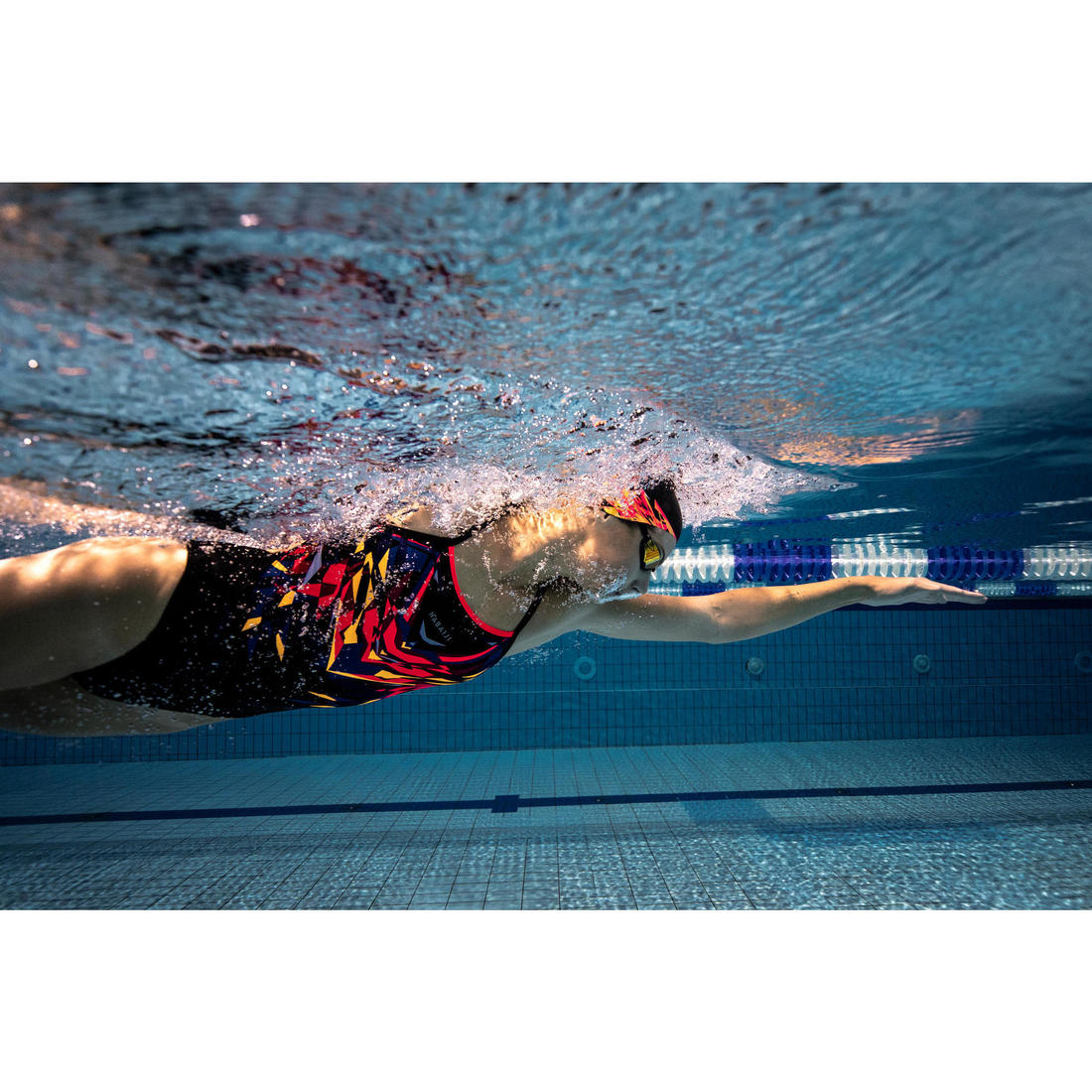 Nos ingénieurs ont développé une matière à base de polyester et ont remplacé les fibres d’élasthane par une fibre élastoléfine qui garantit l'élasticité nécessaire pour assurer le confort, mais surtout qui n'est pas attaquée par le chlore. Ce fil a aussi pour avantage de sécher rapidement. Autre atout : Les couleurs seront plus stables même sur les couleurs vives.