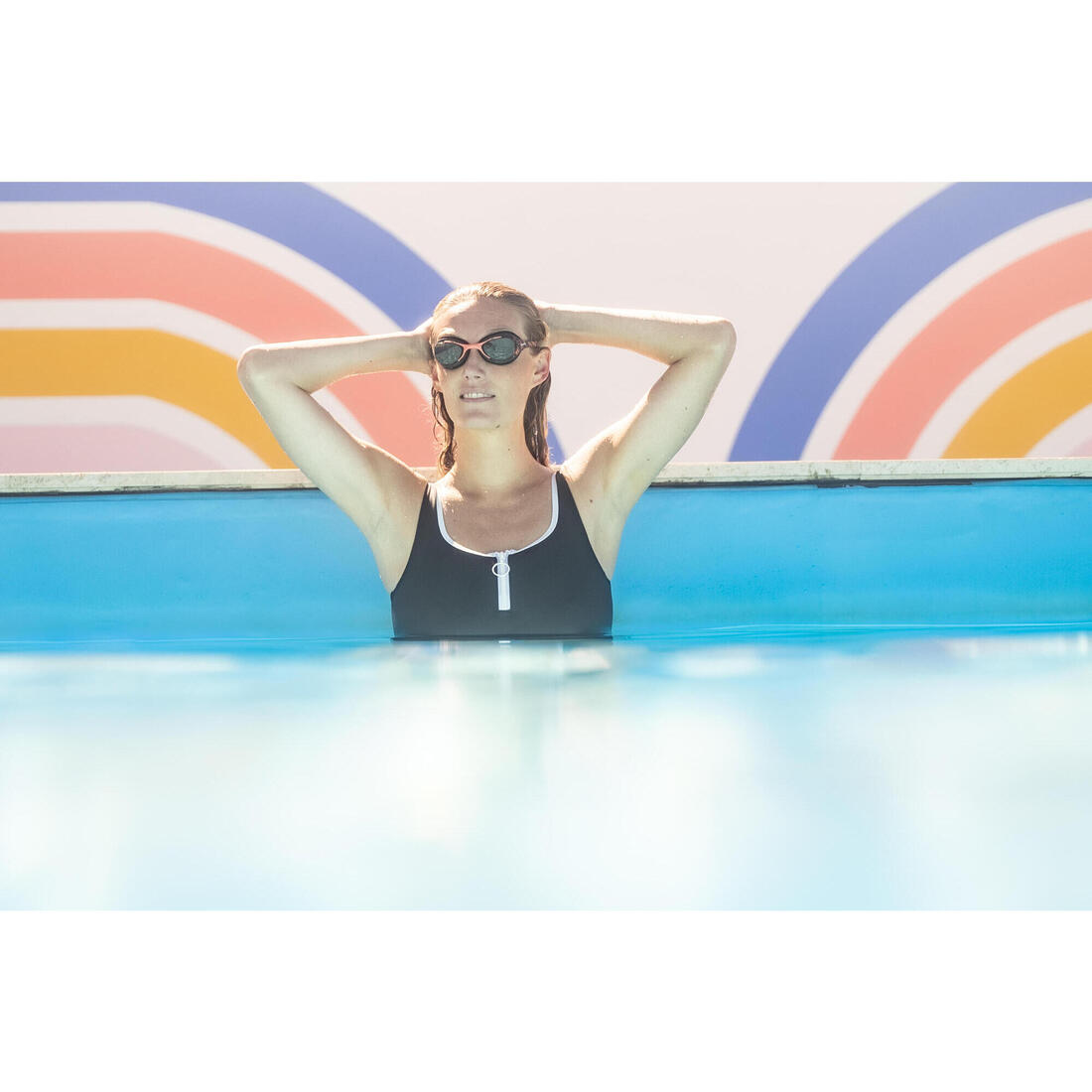 Envie de pratiquer sans contrainte ? Avec ses bretelles larges, son zip, son dos en U et sa forme shorty couvrant les fesses, ce maillot de bain 1 pièce allie confort et facilité d'enfilage.
