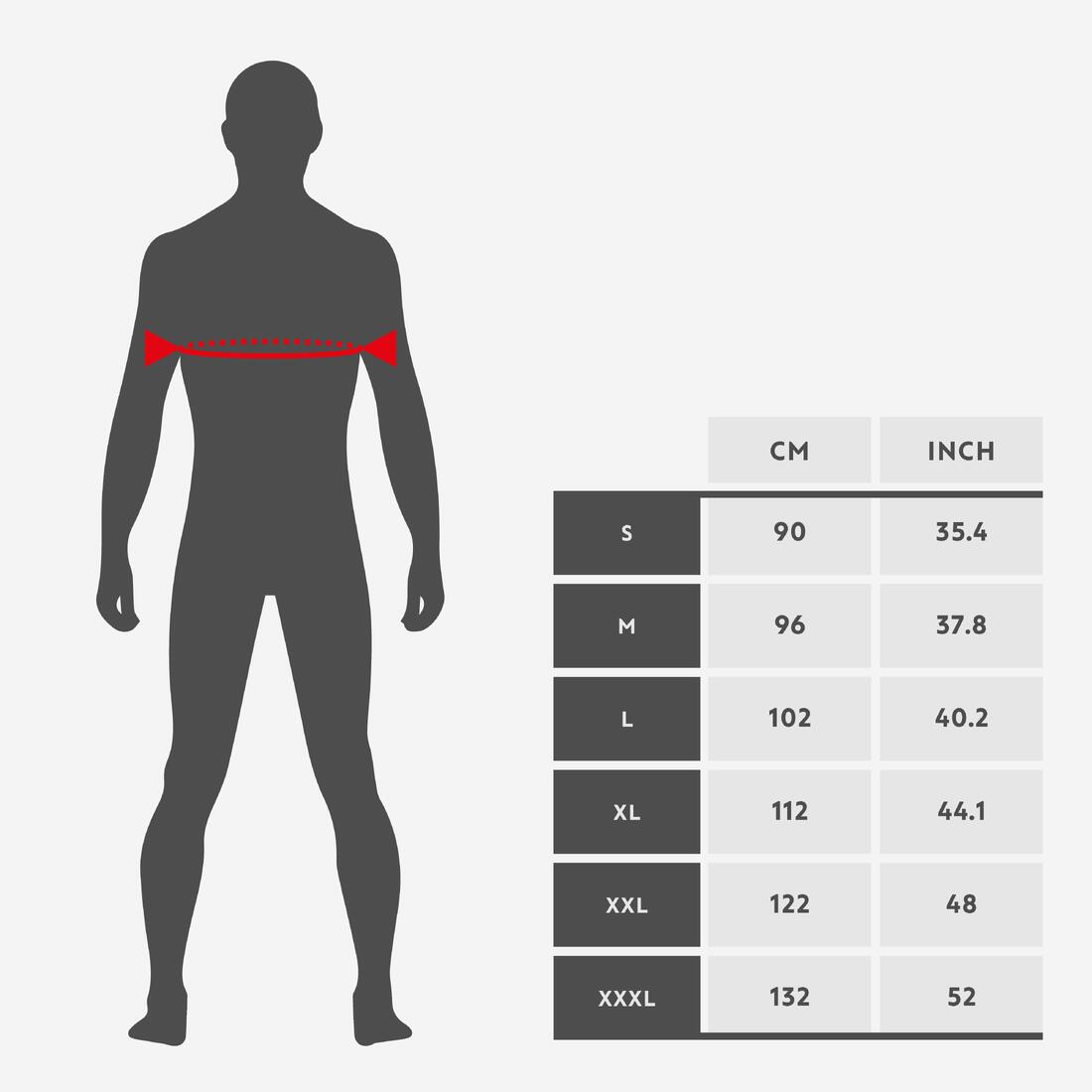 Poitrine (in) | 30.7 – 31.5 | 31.5 – 33.5 | 33.5 – 35.4 | 35.4 – 37.4 | 37.4 – 39.4 | 39.4 – 41.3 | 41.3 – 43.3 | 43.3 – 45.3 | 45.3 – 47.2 | 47.2 – 49.2 |