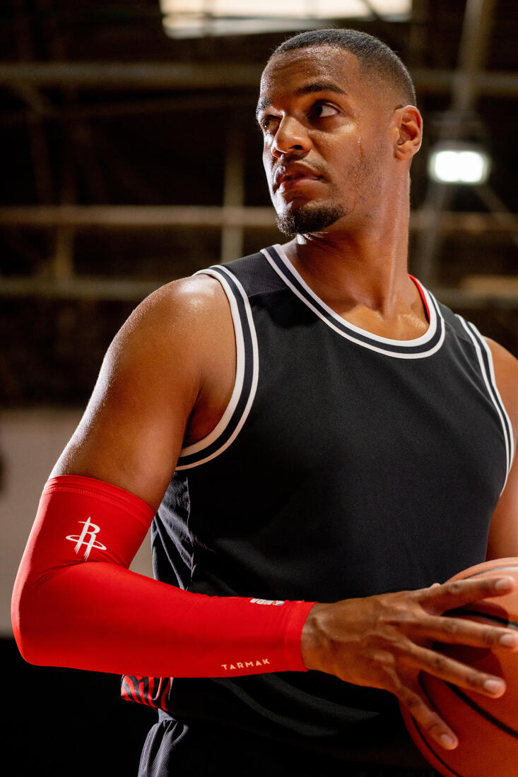 TARMAK partenaire de la NBA a développé cette coudière/manchette pour le joueur souhaitant garder son bras à bonne température et réduire la fatigue musculaire.