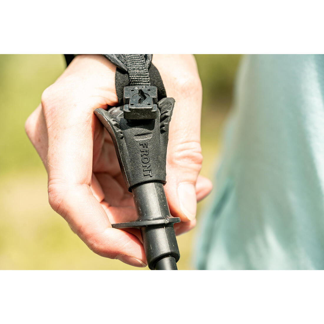 La marche nordique se pratique toujours avec deux bâtons pour favoriser la propulsion. Les gantelets vous permettent de lâcher et de rattraper les bâtons sans les faire tomber. Les bâtons monobrins ont l'avantage d'être légers et de ne pas se rétracter dans la pratique. Ils absorbent les vibrations et permettent ainsi de ménager vos articulations. La pointe des bâtons permet d'accrocher le sol et de vous propulser vers l'avant. Des embouts amovibles vous garantissent l’adhérence sur sol dur.