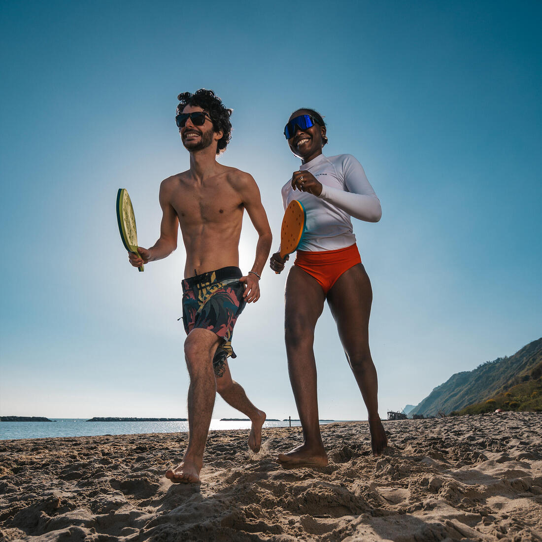 Le set ideal pour découvrir le beach tennis loisir avec les pieds dans l'eau. Avec les raquettes et la balle en mousse le plaisir est assuré!