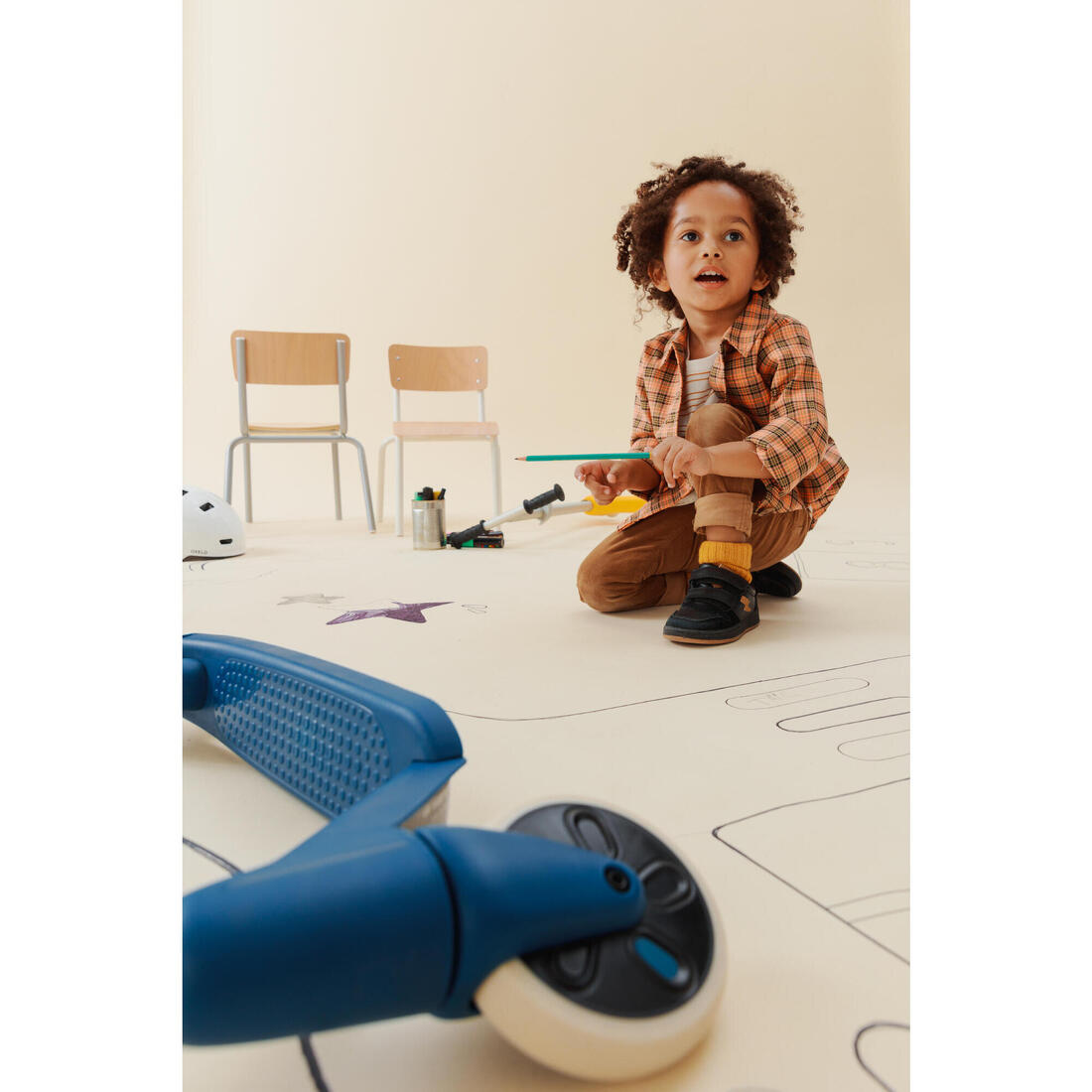 Cette trottinette est conçue pour accompagner le développement de l'équilibre sur 2 roues chez l'enfant. Ne convient pas à un enfant de moins de 3 ans. Nous recommandons un usage sous surveillance d'un adulte Prenez le temps d'accompagner votre enfant et de lui apprendre les bases de la pratique ATTENTION, il convient de porter un équipement de protection (casque, genouillères et coudières)