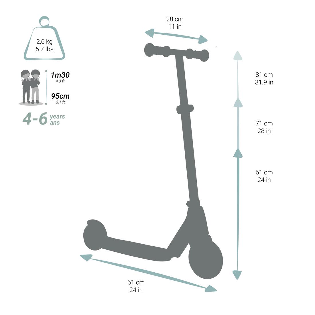 Encore plus de FUN pour des premières sensations de glisse super faciles sur ma première trottinette 2 roues! Pour les enfants de 4 à 6 ans, de 95cm à 1m30.