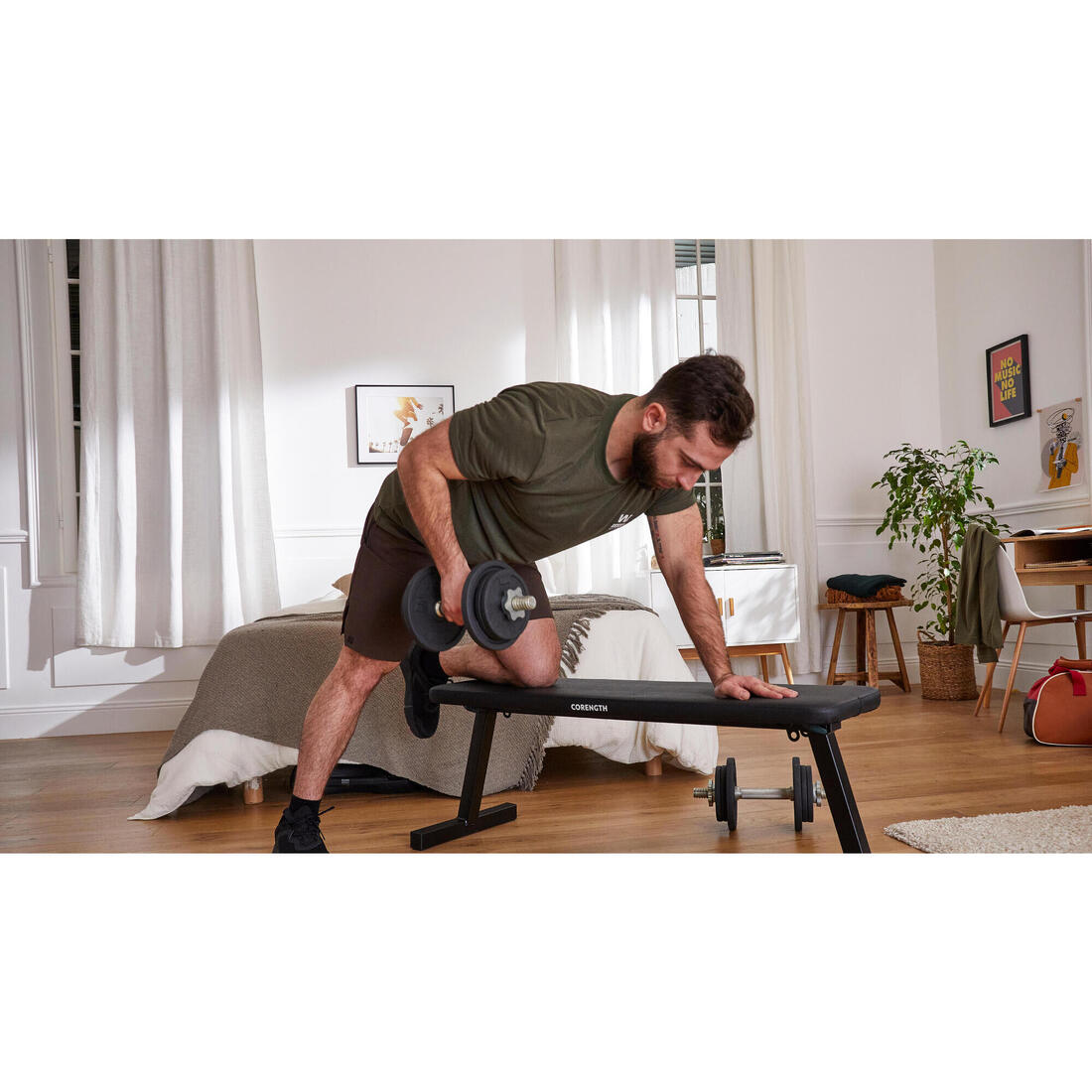 Pensez à compléter votre achat avec notre kit 20kg (réf : 8018574) composé de 2 haltères et de poids en fonte. Vous pouvez également augmenter la charge lors de vos exercices grâce à nos poids en fonte (réf: 1042303)