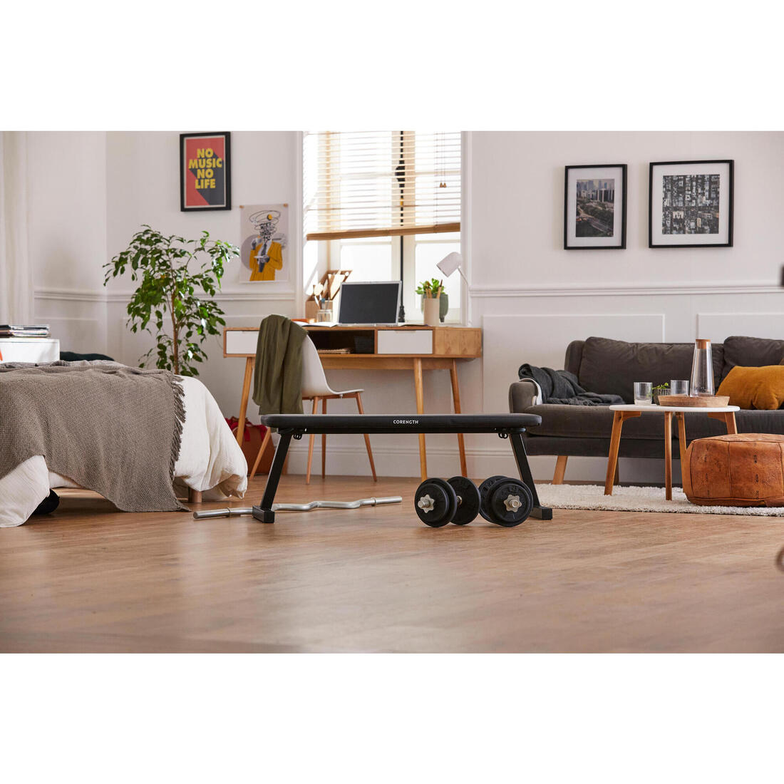 Ce banc de musculation se fera discret grâce à sa compacité et ses pieds repliables. Retrouvez ce produit sur l’app Freeletics et personnalisez vos séances !