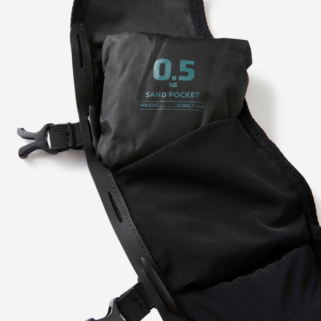 Attention, ce gilet lesté lavable peut supporter jusqu'à 5 kg grâce à ses 10 poids de 0,5 kg.