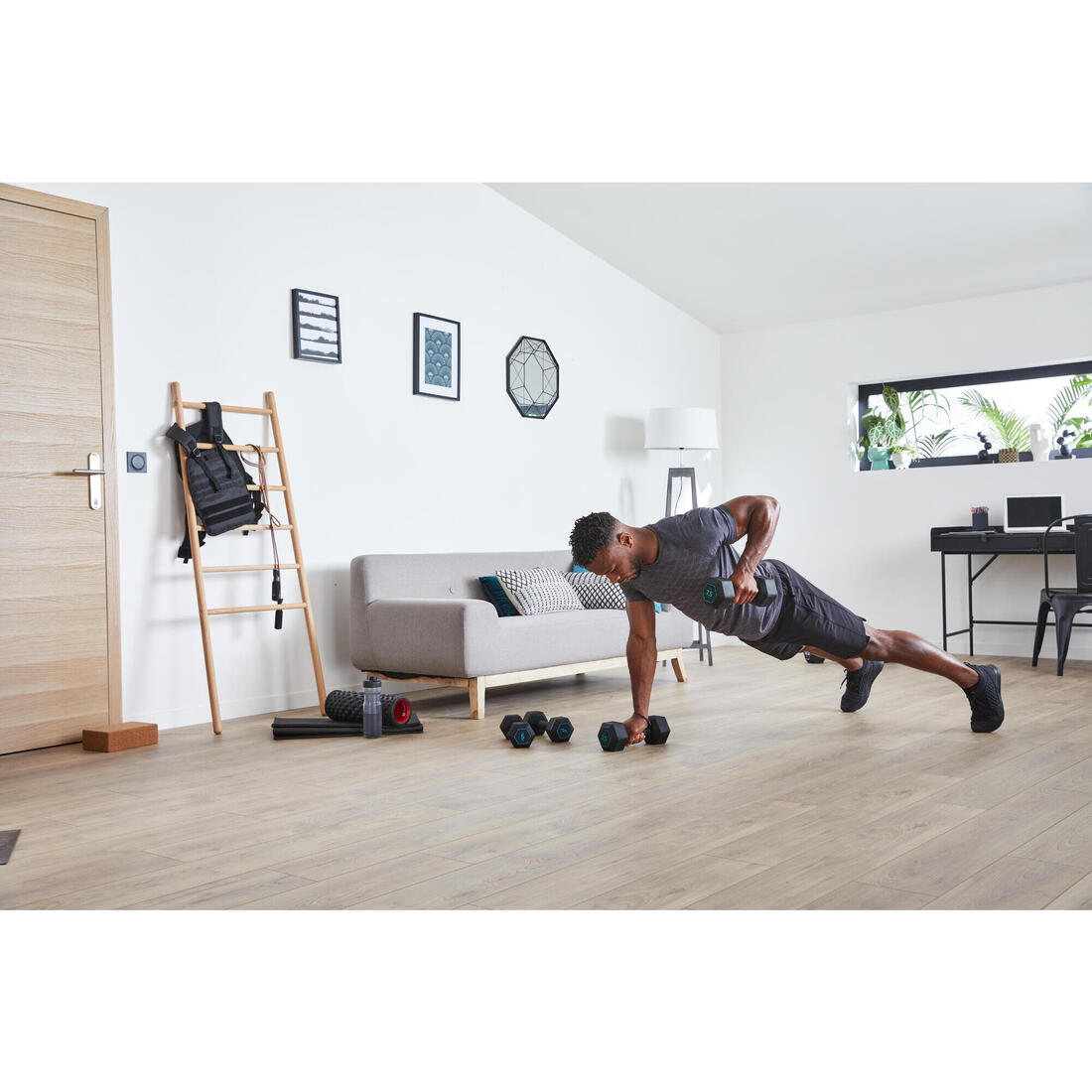 Un moletage ergonomique pour une meilleure prise en main et un revêtement en caoutchouc pour assurer l'amorti du dumbell au sol. Testez de nouveaux entraînements avec l'appli Freeletics !