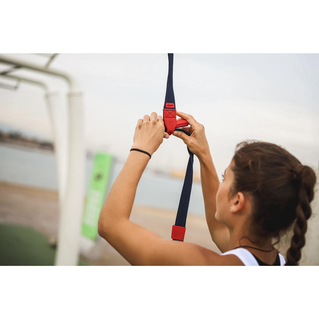 Le Strap Training vous permet de travailler tous vos groupes musculaires en poids du corps et en entraînement fonctionnel : les bras, les jambes, les dorsaux, le gainage... Et selon votre niveau et vos objectifs, vous pouvez l'utiliser pour vous alléger d'une partie de votre poids - et simplifier vos exercices - ou au contraire pour diminuer la stabilité - et augmenter la difficulté, Vous pouvez l'utiliser aussi bien en intérieur qu'en extérieur et le transporter facilement grâce à sa housse.