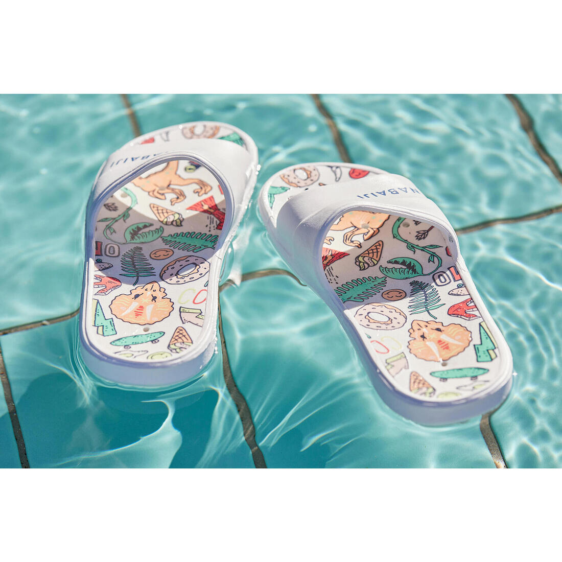 Marre de passer le pédiluve avec crainte ? Ces claquettes de piscine avec inserts en caoutchouc sous la semelle sont idéales pour couvrir le pied de l'enfant qui se rend régulièrement en piscine.
