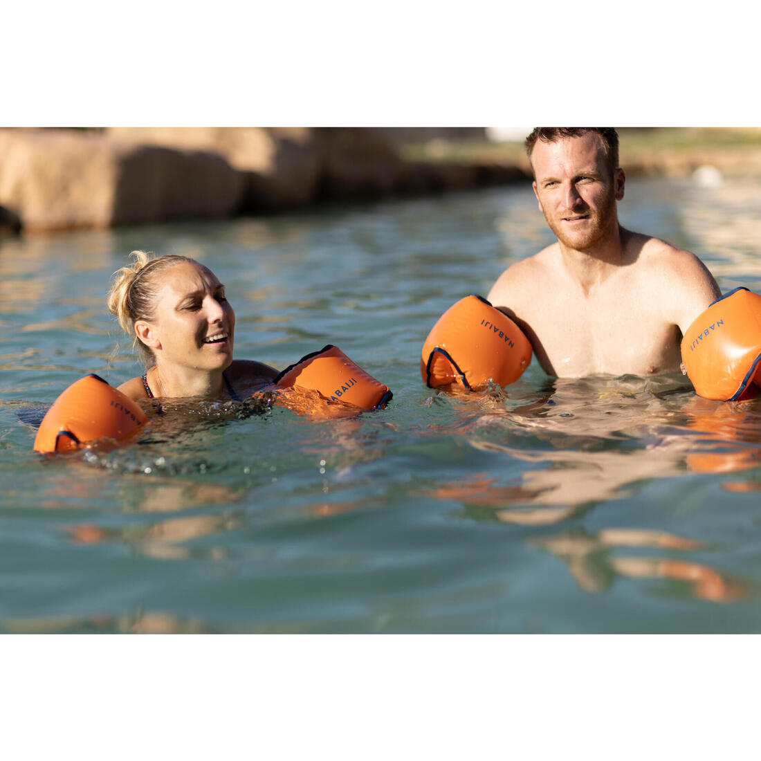 Brassards de piscine avec deux chambres de gonflage avec valves avec clapets anti-retour. Idéal pour la découverte aquatique des adultes.