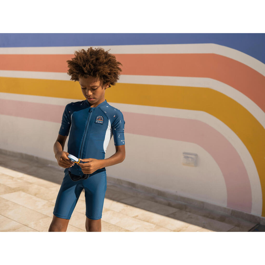 Envie que votre enfant soit bien couvert? Profitez de cette combinaison à manches courtes (jambes courtes) pour vos séances de natation, à la piscine ou en mer.