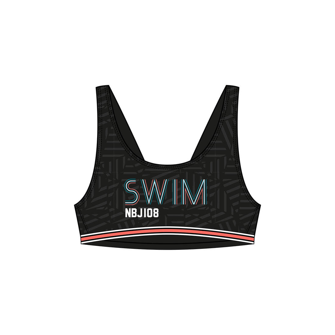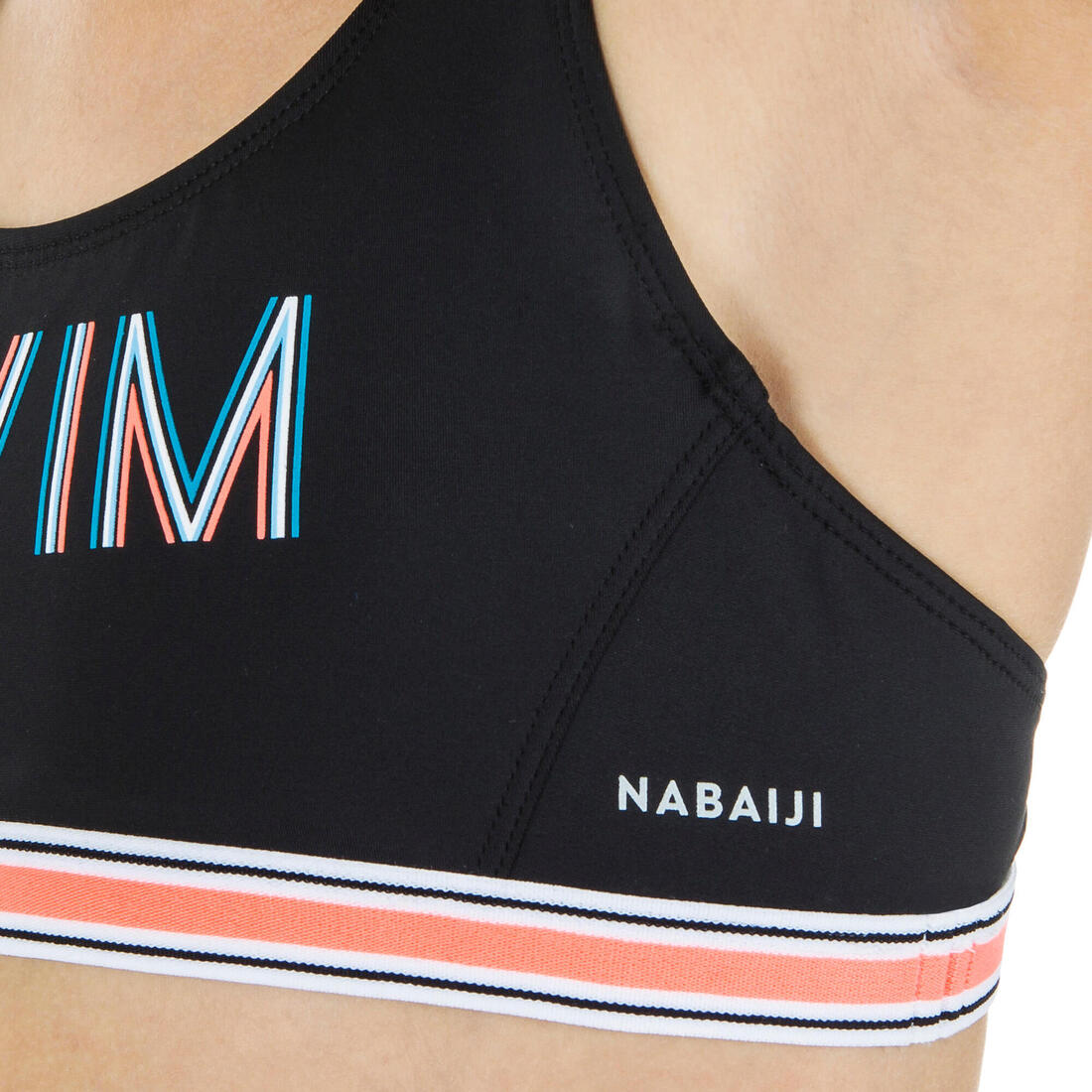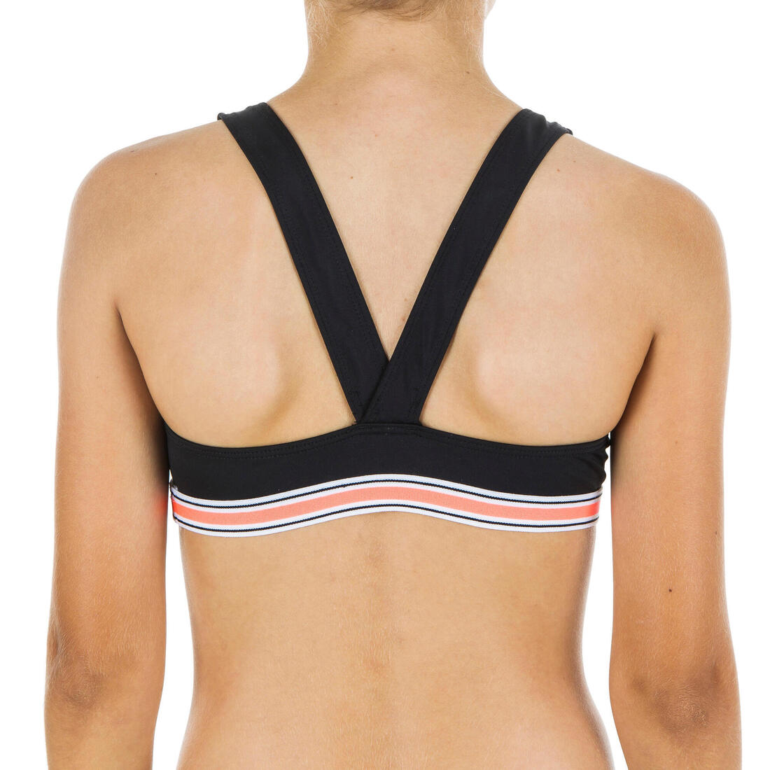 Un haut de maillot de bain brassière qui tient bien en place, idéal pour les jeunes nageuses qui expérimentent leurs premières longueurs en piscine.