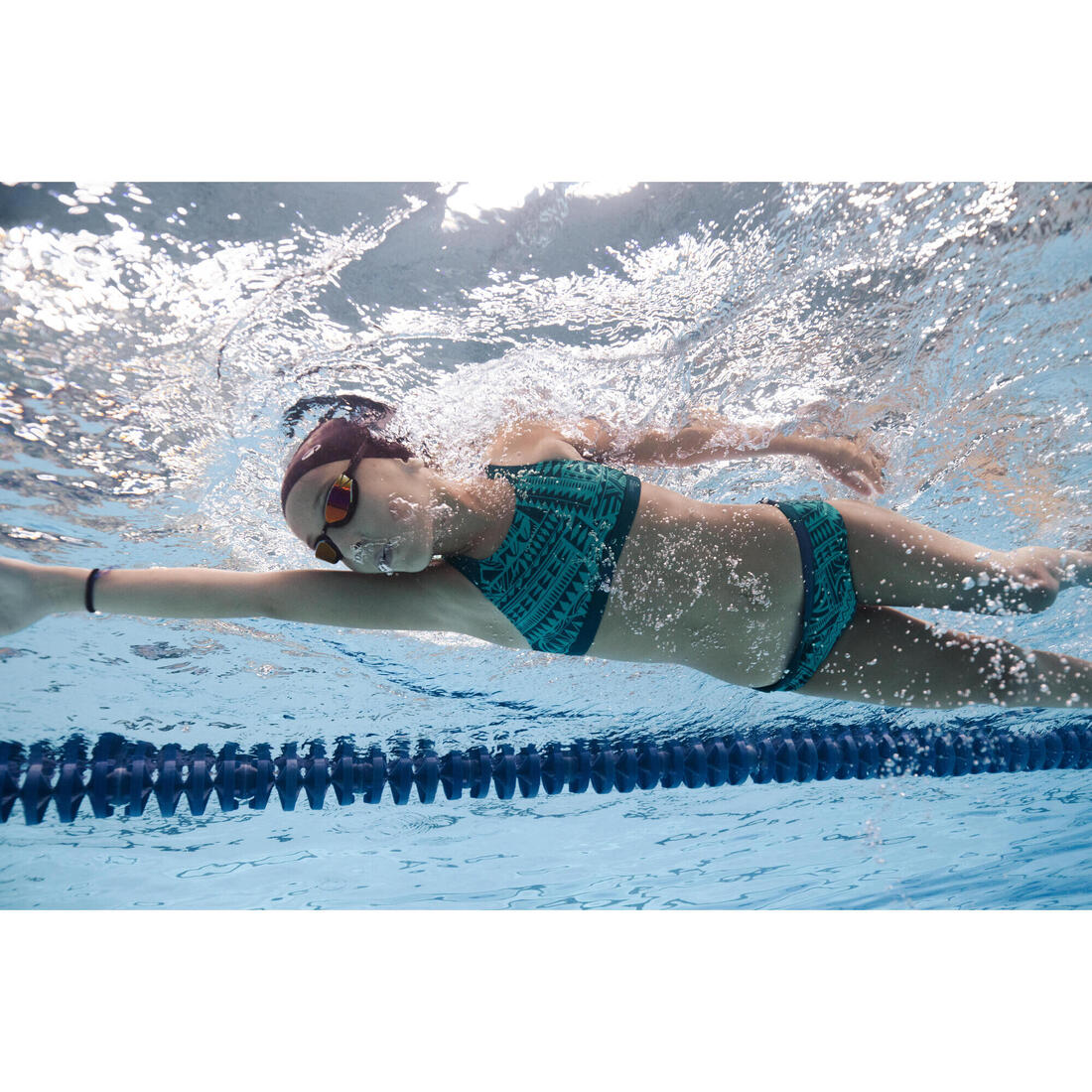 Pensé pour les jeunes nageuses habituées à enchaîner les longueurs, ce haut de maillot de bain brassière offre une tenue parfaite pendant les entraînements.