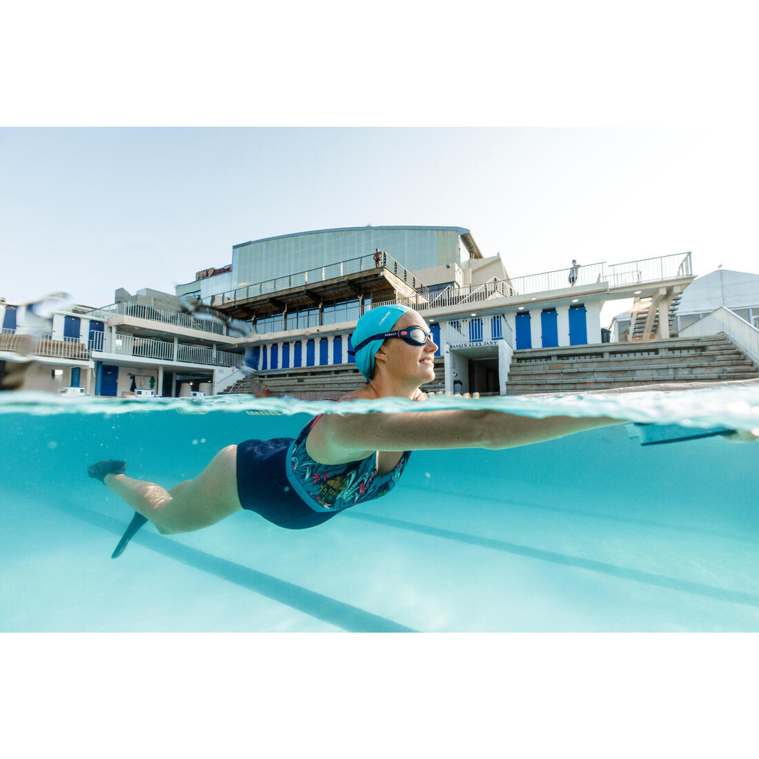 Nage débutante : la nageuse débutante s’initie à la natation et a besoin d’aisance et de confort. Elle cherche avant tout une activité physique liée à l'eau, pour ses bienfaits sur son bien-être et sur sa santé. Pour elle, Nabaiji propose un large choix de maillots de bain qui lui permettent de pratiquer la natation avec des produits adaptés, mais qui répondent aussi à ses besoins morphologiques.
