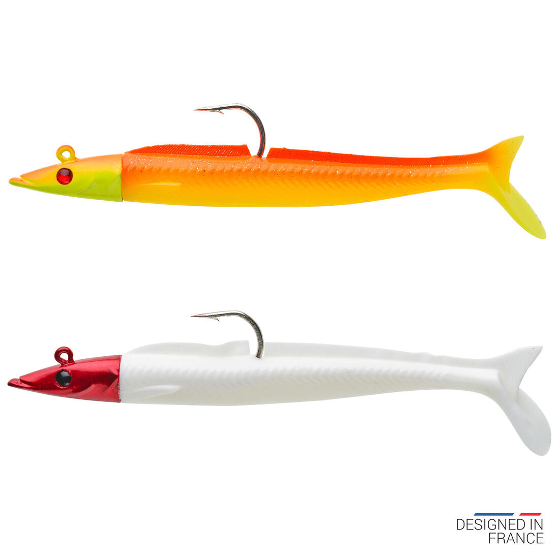 Nous avons dessiné une forme de lançon très réaliste pour lui apporter plus d'efficacité. De plus, ce shad-lançon est pré-monté avec sa tête plombée (collée) pour pêcher plus rapidement.