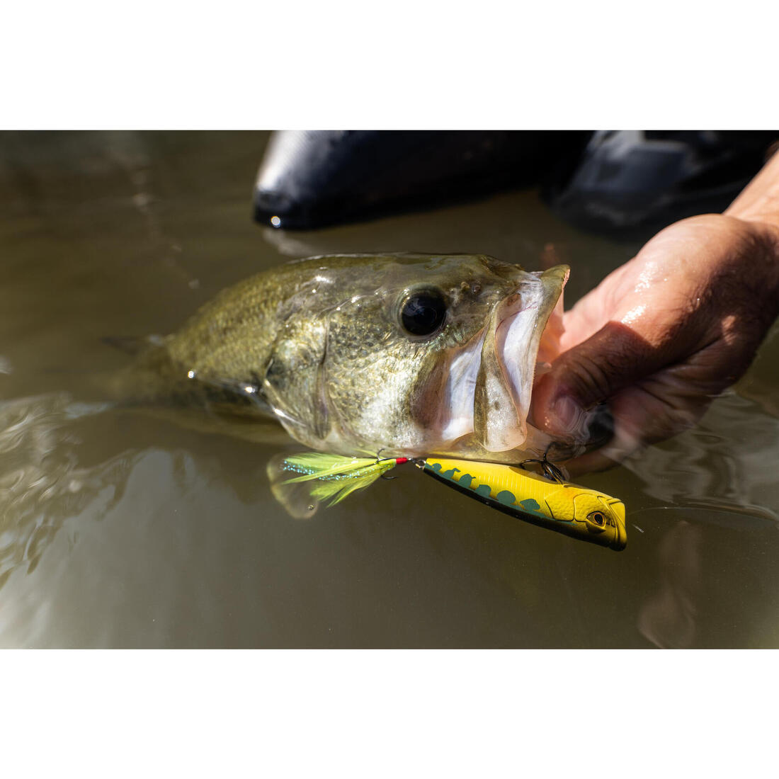 Ce poisson nageur, appelé popper, est destiné à la pêche de la perche, du black bass, du brochet et du chevesne.