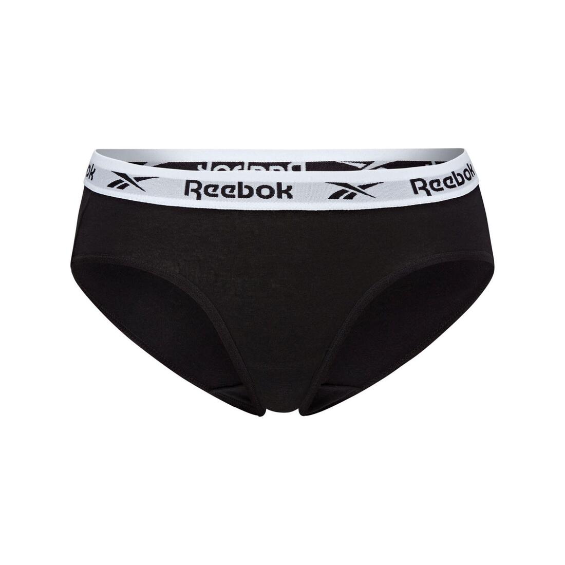 Lot de 3 culottes Reebok pour femme en noir/blanc/gris. Coton confortable avec ceinture en microfibre.