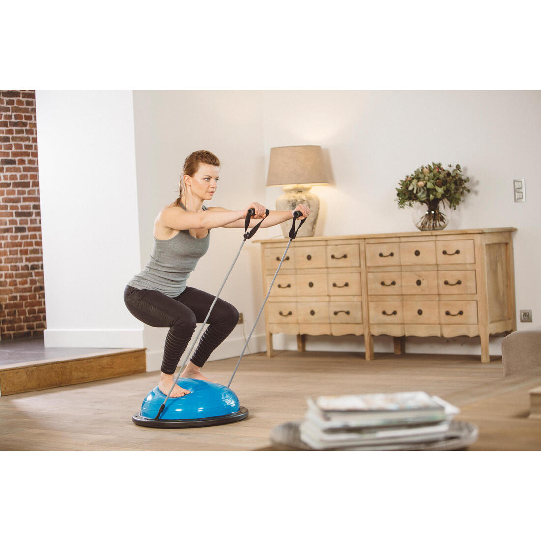 Station d'équilibre fitness réversible avec élastiques, bleu