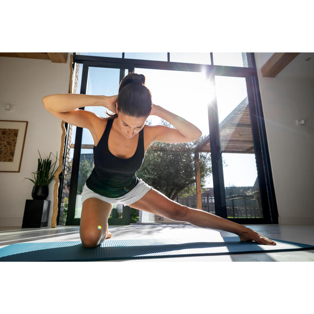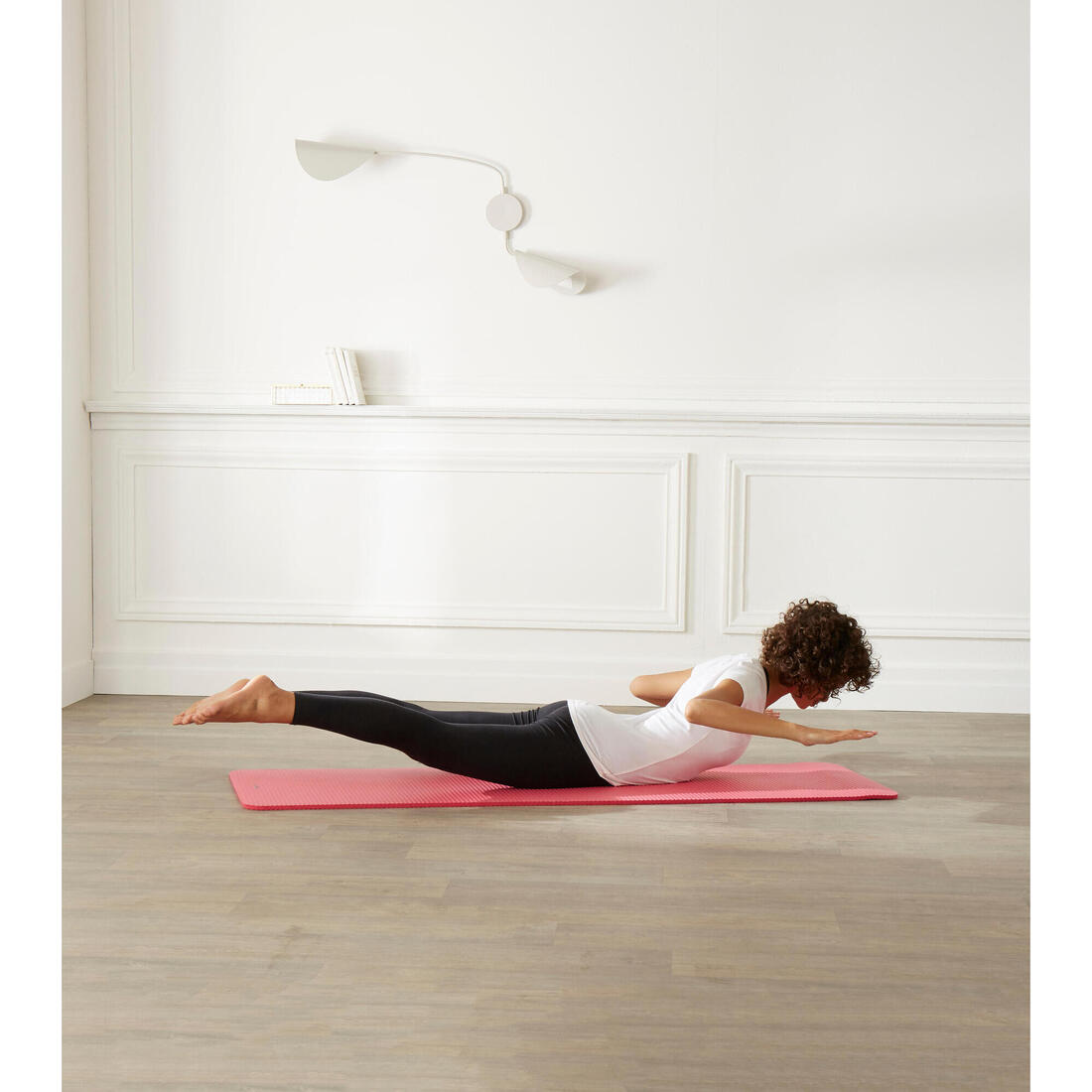 10 mm d'épaisseur pour un bon confort d'accueil, ce tapis vous permet de réaliser tous vos exercices de Pilates, ou de gym douce. À utiliser sans chaussures.