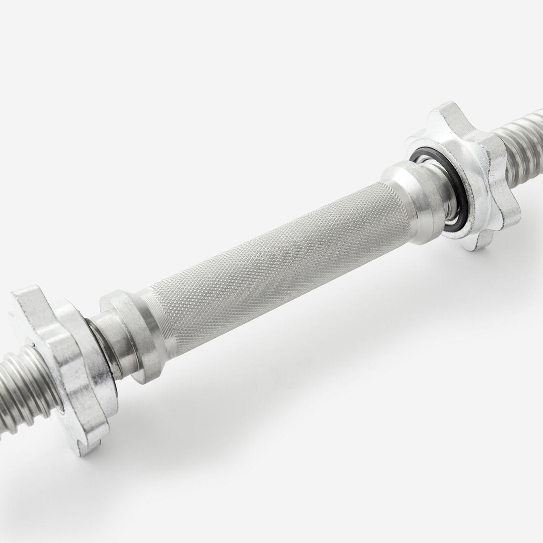 La barre filetée, c'est la possibilité de charger davantage qu'avec une barre non filetée qui nécessite des stop disque. Les smart stop disque, par exemple, ont une limite de poids de 15kg en position verticale, alors que la barre filetée avec écrous a un poids maximum de 30kg par côté. Elle mesure 45cm, vous permettant de charger jusqu'à 60kg sur votre haltère !