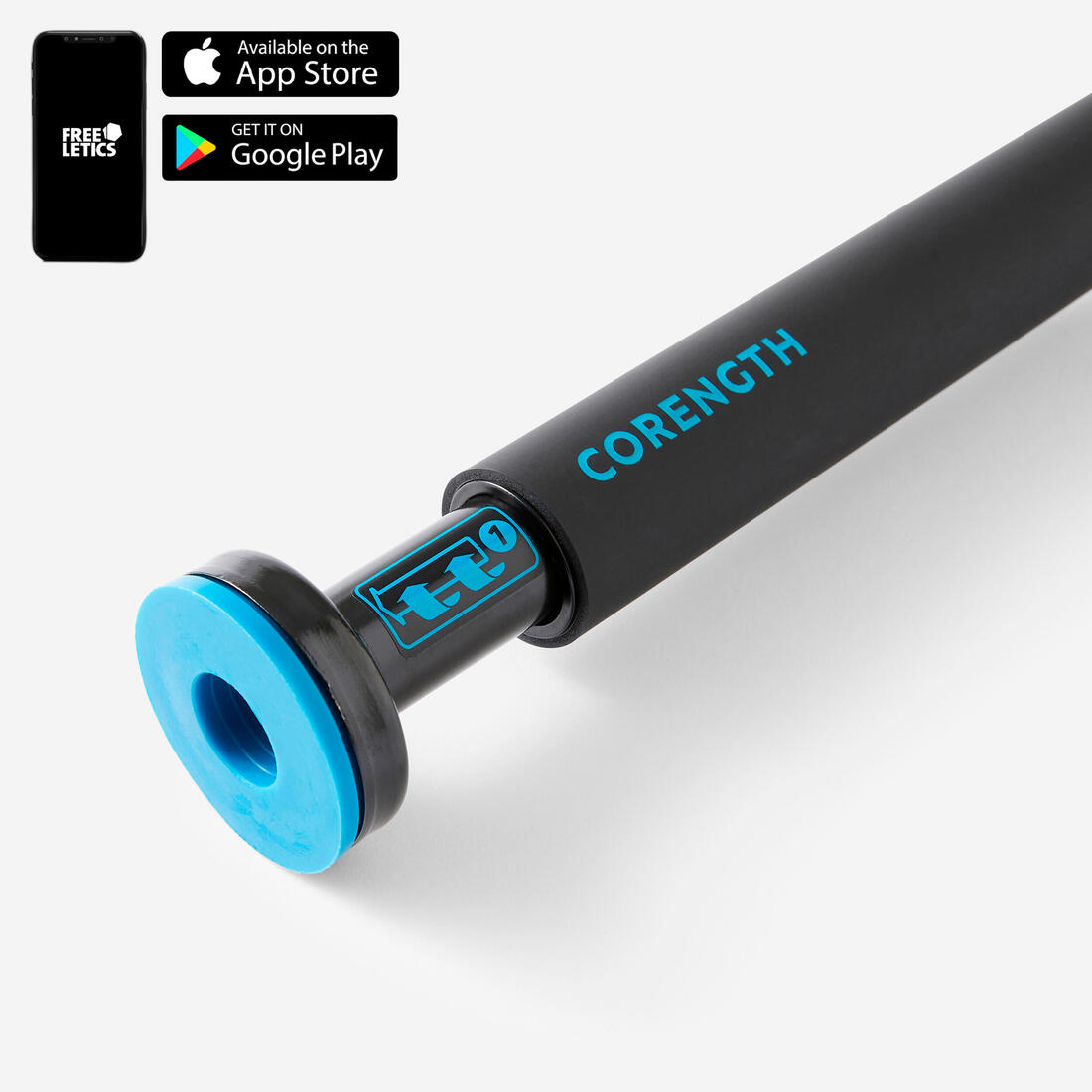 Les barres de traction à installer sur un cadre de porte, vous connaissez déjà. Celle-ci a été améliorée. Cette barre est équipée d'une bague bleue qui sert à la bloquer une fois qu'elle est installée, garantissant ainsi la sécurité de l'utilisateur. Vérifiez toujours que la barre tient bien en tirant un coup sec dessus avant de vous lancer.