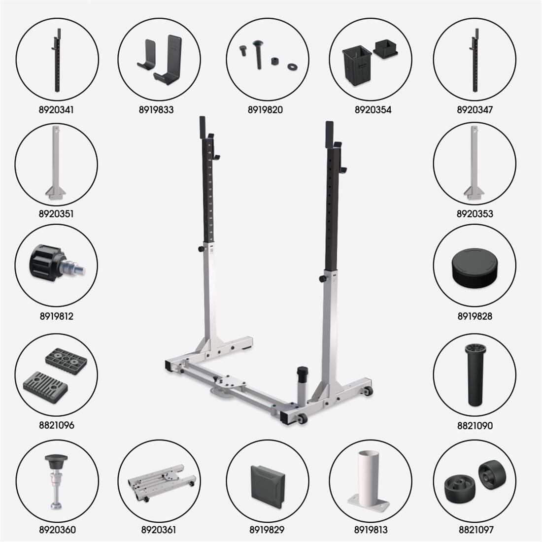 On sait que notre rack est hyper design et beau à regarder juste comme ça, mais il est quand plus intéressant de l'utiliser avec un banc, des barres ou encore des poids ! Notre rack pliable est donc compatible avec nombre de nos accessoires de musculation comme : - le banc de musculation (8788244) ; - la barre de musculation de 2 m (8289900) ; - les poids en fonte 28 mm de 0,5 à 20 kg (1042303)...