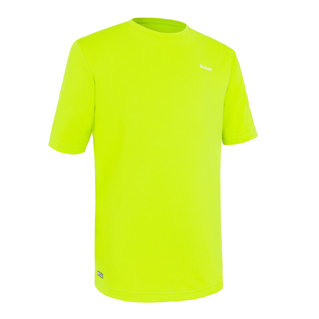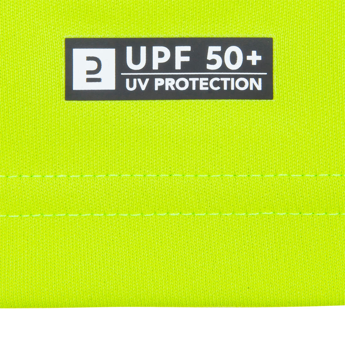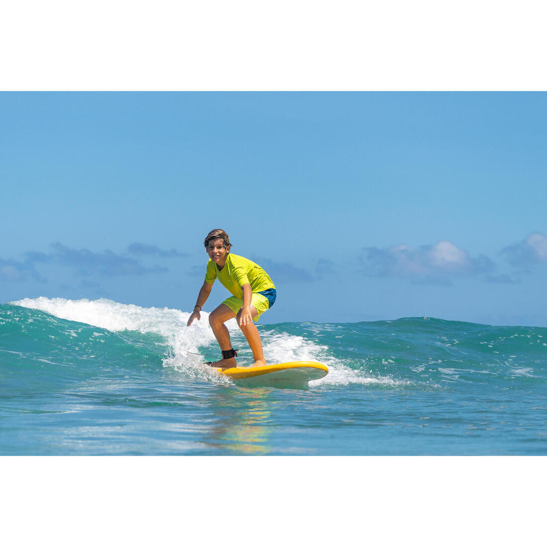 Tee shirt anti-UV junior manches courtes pour protéger du soleil, même dans l'eau, et limiter les irritations au contact de la planche. Coupe ample pour un enfilage facile.