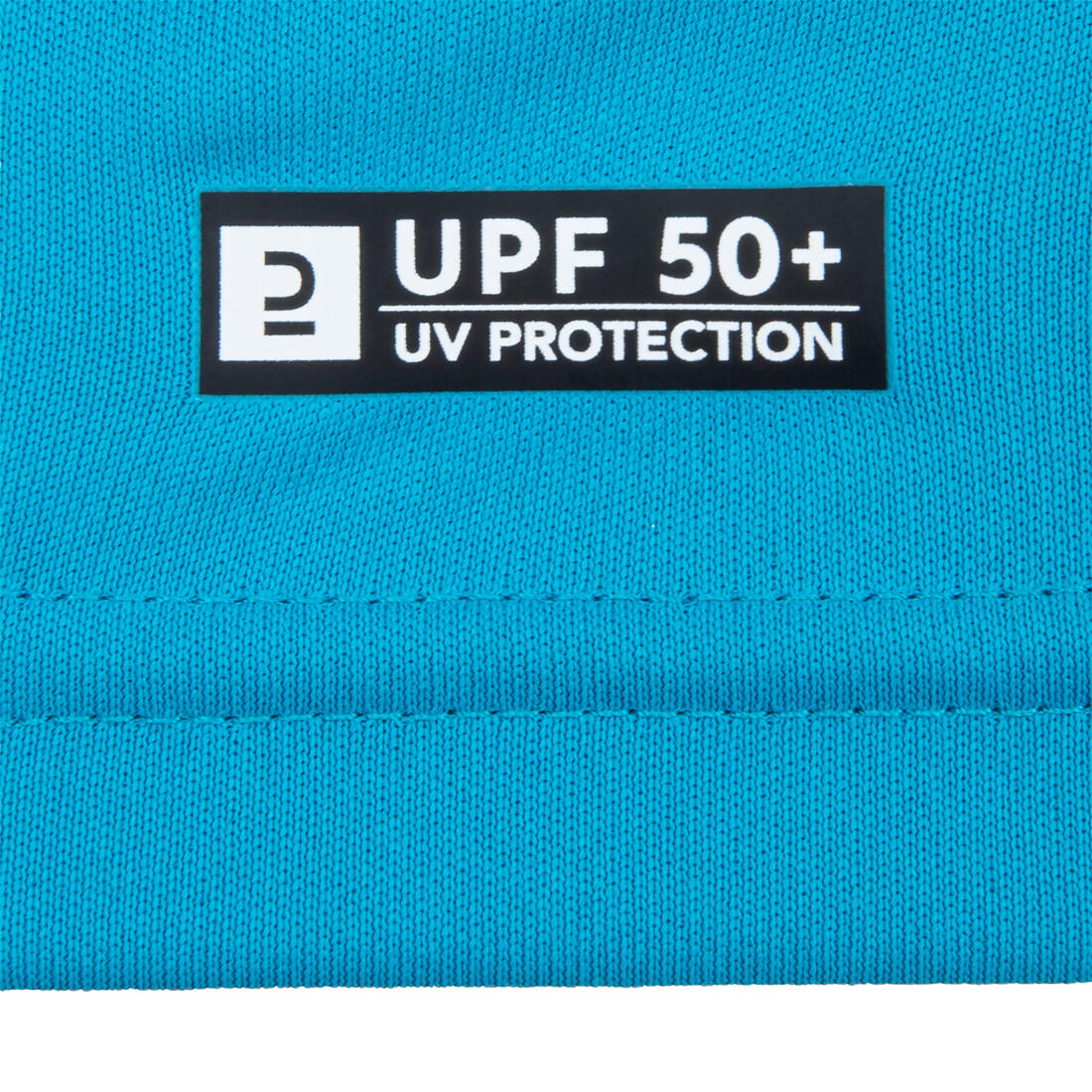 Le textile qui compose ce produit anti-UV OLAIAN permet de bloquer au minimum 98 % des UVB et 95 % des UVA (UPF 50+). C'est la garantie d'une protection efficace contre le soleil. Il peut être utilisé dans et hors de l'eau pour la pratique des sports nautiques et aquatiques. La filtration des UV est générée par la densité des fibres textiles, cette protection est pérenne dans le temps, même après lavage.