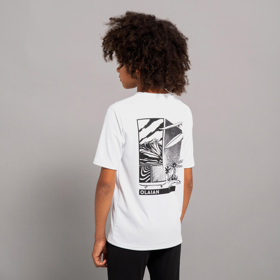 T-shirt anti UV manches courtes surf Junior - 100 blanc noir skate