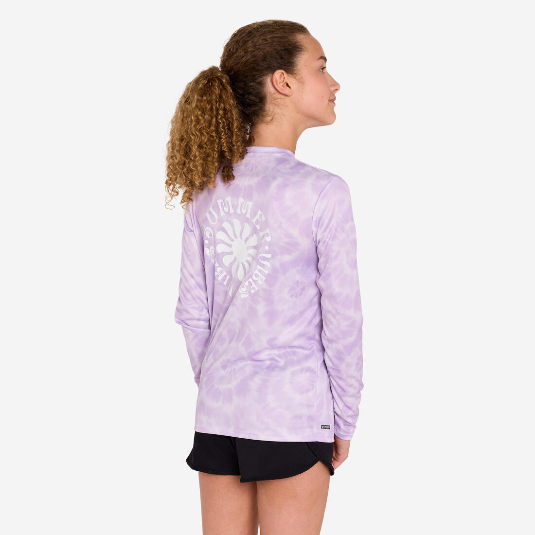T-shirt anti UV manches longues surf Junior - 100 Vibes parme