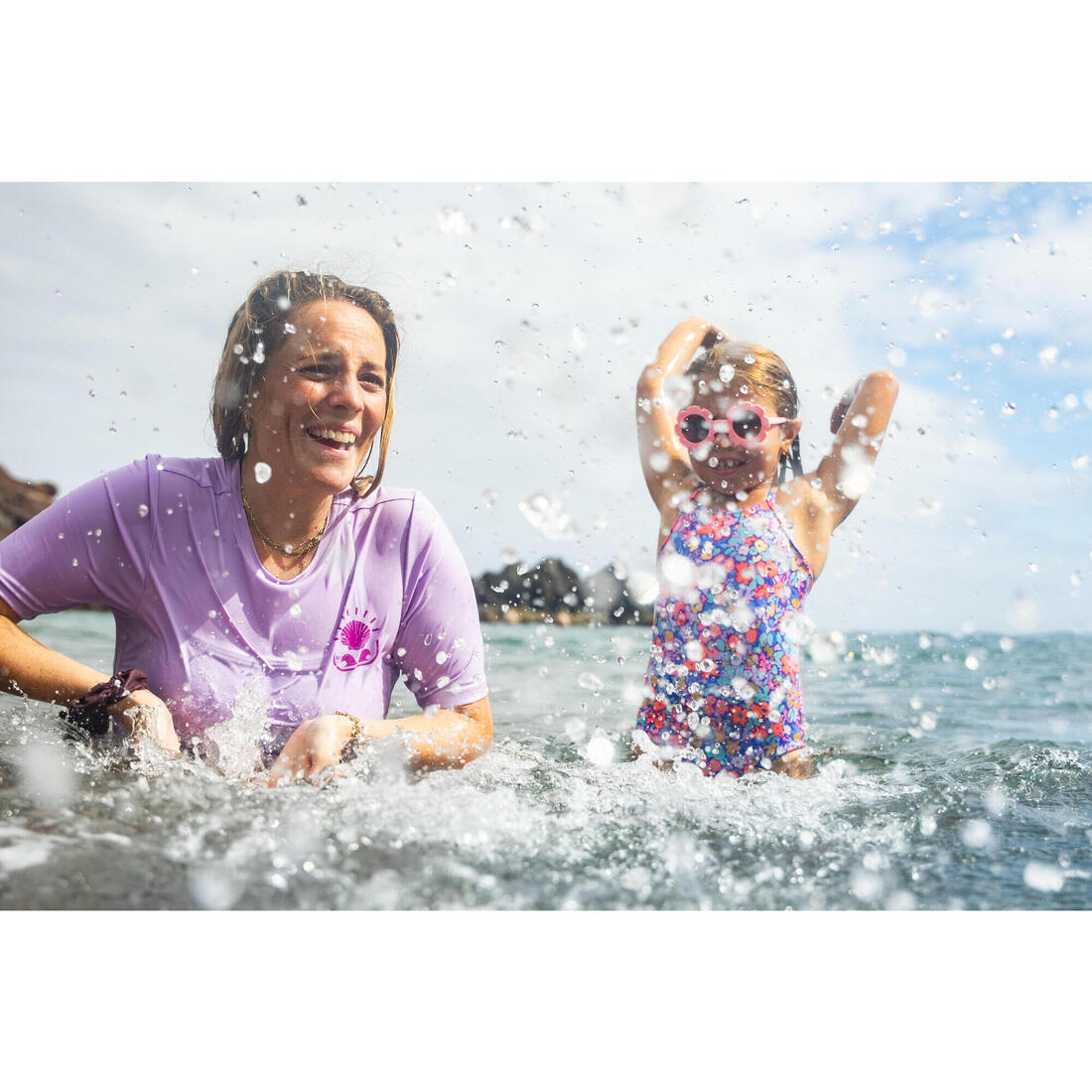 Ce tee shirt à manches courtes vous protège du soleil, même dans l'eau et limite les frottements. Sa coupe ample et son motif coquillage lui donnent un style décontracté sur la plage comme dans l'eau.